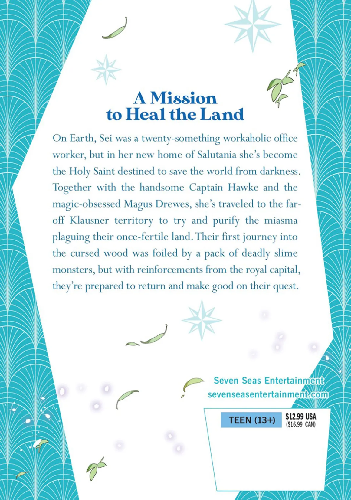On Earth, Sei was a twenty-something workaholic office worker, but in her new home of Salutania she’s become the Holy Saint destined to save the world from darkness. Together with the handsome Captain Hawke and the magic-obsessed Magus Drewes, she’s traveled to the far-off Klausner territory to try and purify the miasma plaguing their once-fertile land. Their first journey into the cursed wood was foiled by a pack of deadly slime monsters, but with reinforcements from the royal capital, they’re prepared to return and make good on their quest.