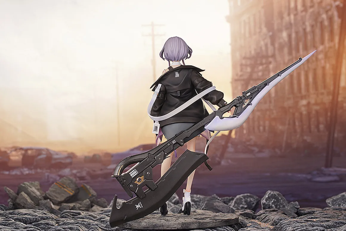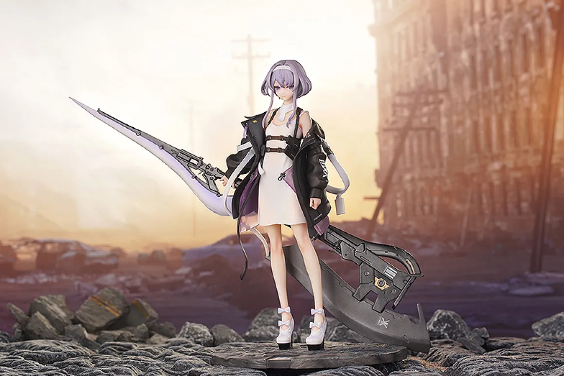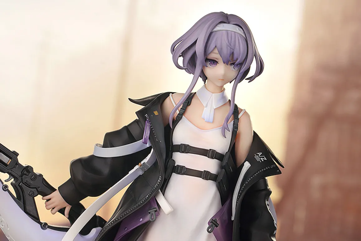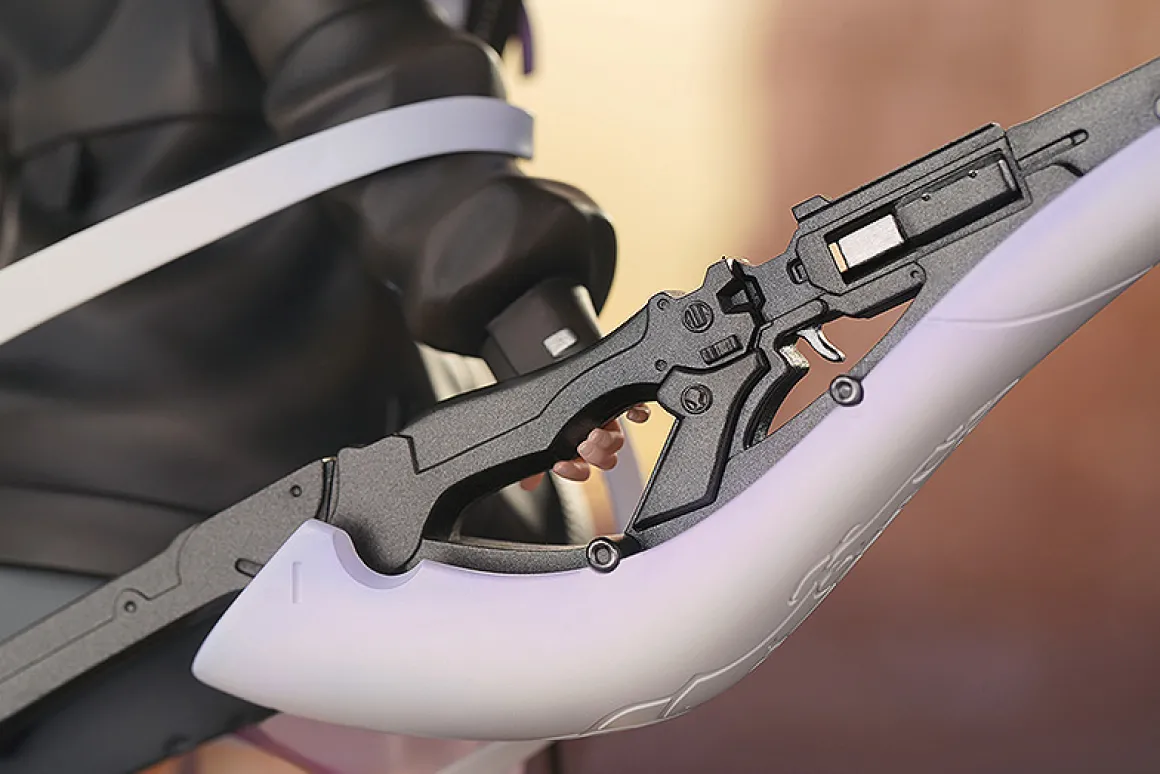 Her cold, languid expression, body silhouette emphasized by her loose-fitting jacket and the enormous weapon that stands in stark contrast with her delicate physique have all been carefully captured in figure form.