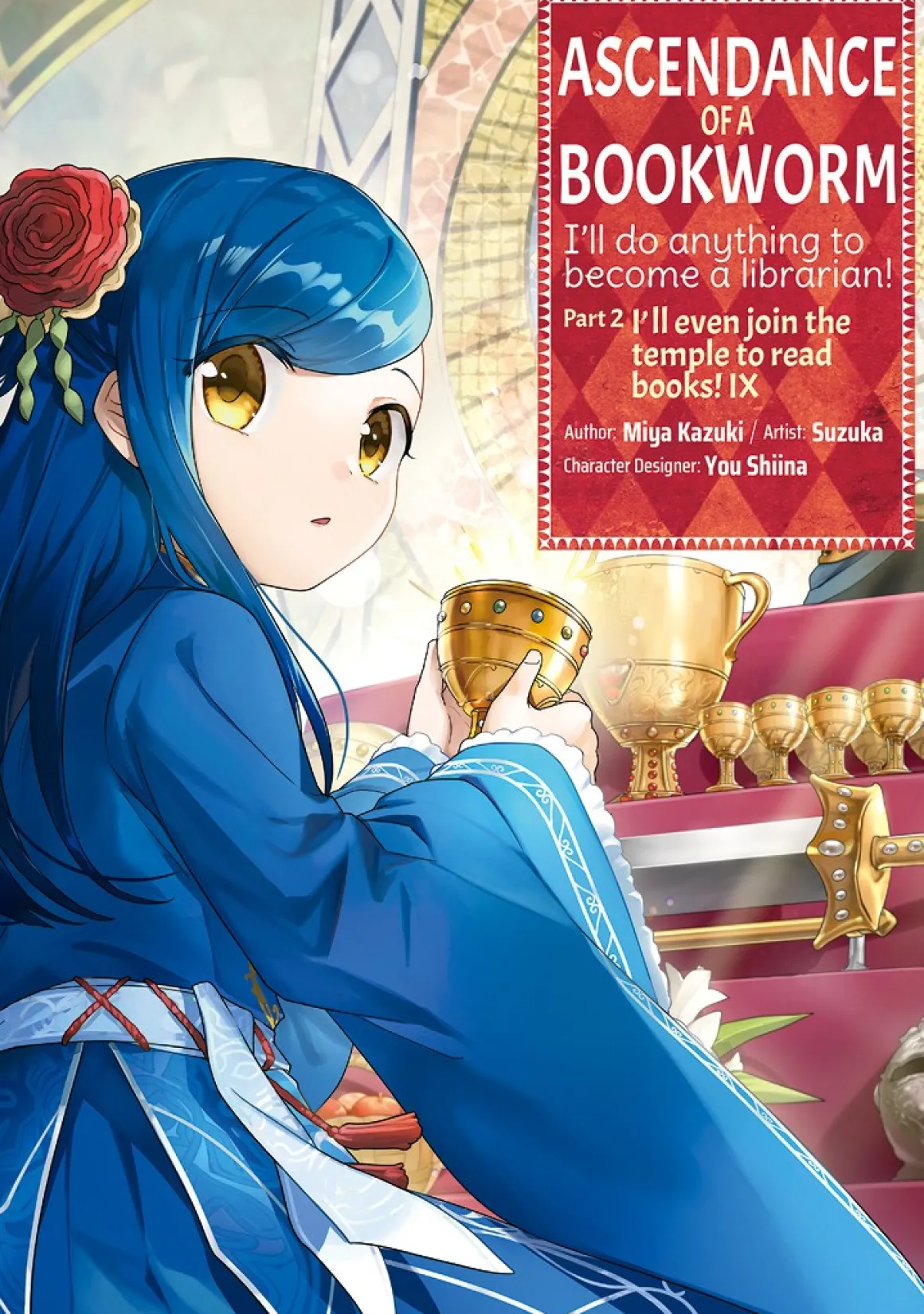 Ascendance of a Bookworm Part 2 Manga Volume 9 features story by Miya Kazuki and art by Suzuka.
