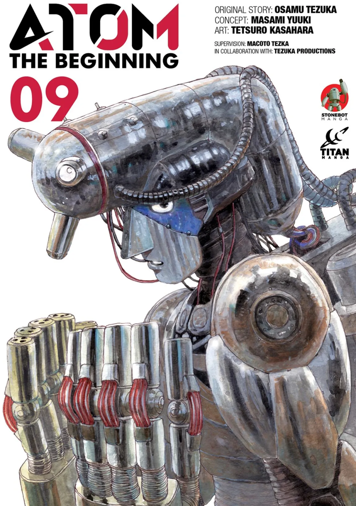 ATOM: The Beginning manga volume 9 is based on the original work by Osamu Tezuka and features story and art by Tetsuro Kasahara.