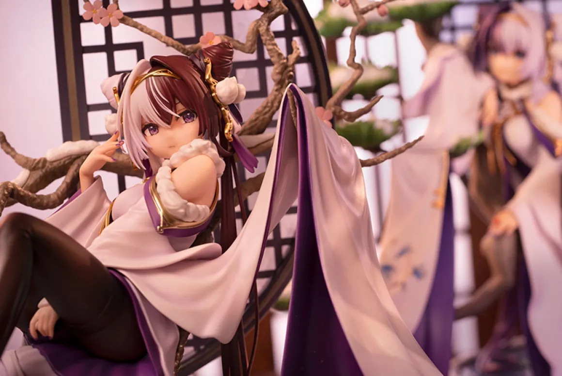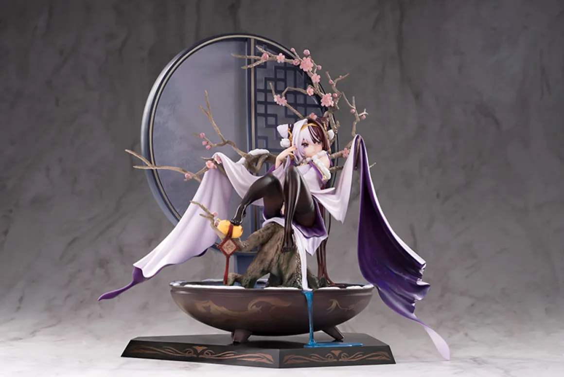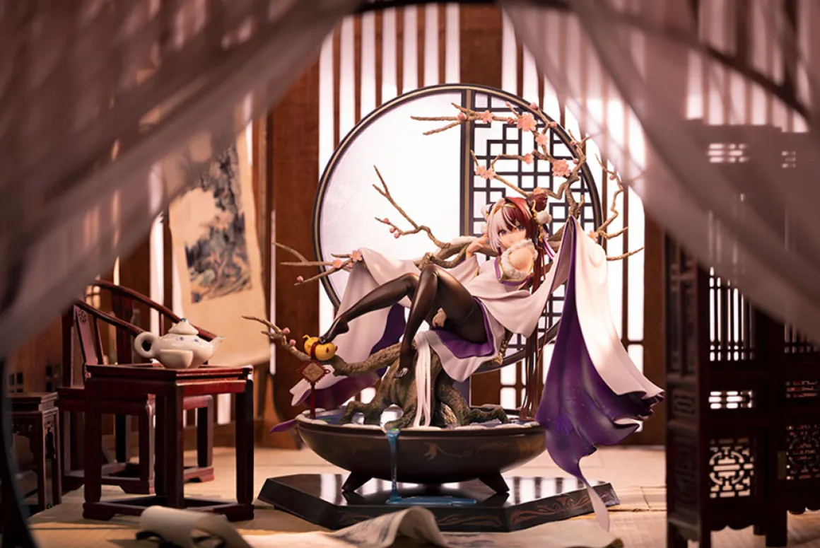 Chao Ho from the popular smartphone game "Azur Lane" is now a lovely figure from Hobby Max! In her "Plum Blossom’s Illumination" skin, she embodies the charm of the Chinese New Year, with one of her sleeves and her rear skirt draped across the boughs of the blossoming plum tree behind her. The water in the basin below her is overflowing just a bit to add a splash of intense color to the composition, and you’ll love her shy expression.