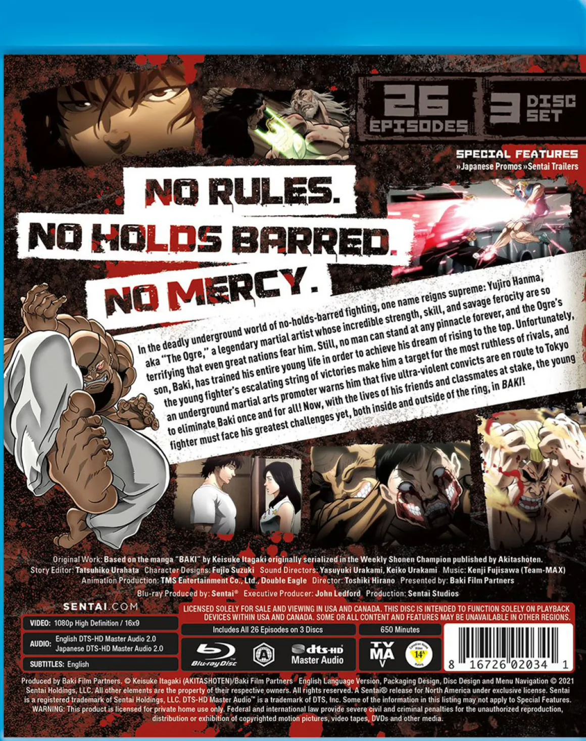 Baki contains episodes 1-26 of the anime directed by Toshiki Hirano.