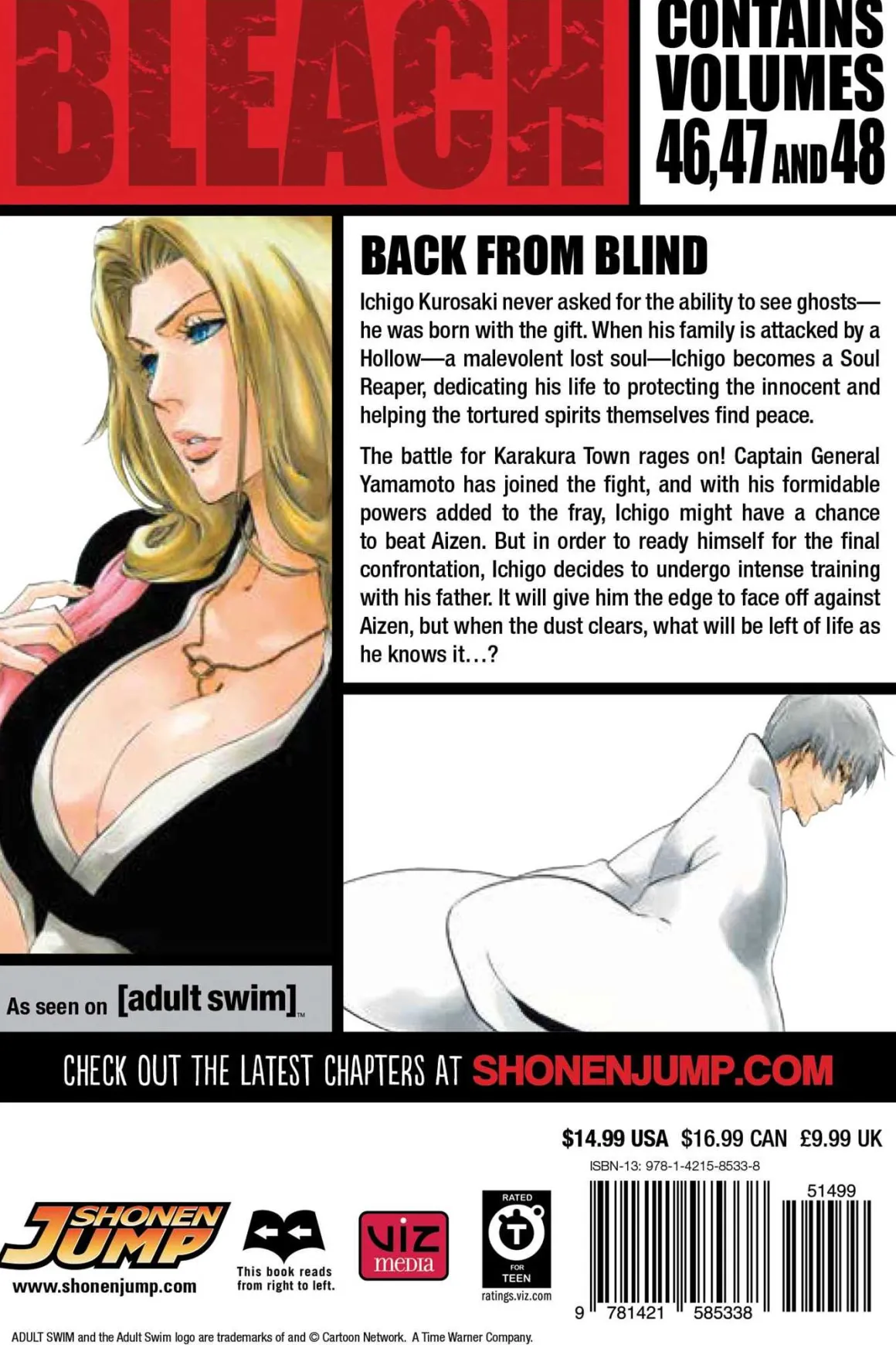 The battle for Karakura Town rages on! Captain General Yamamoto has joined the fight, and with his formidable powers added to the fray, Ichigo might have a chance to beat Aizen. But in order to ready himself for the final confrontation, Ichigo decides to undergo an intense training with his father. It will give him the edge to face off against Aizen, but when the dust clears, what will be left of life as he knows it…?