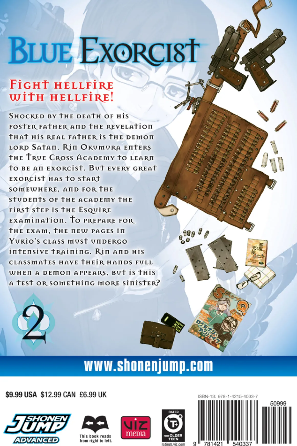 Shocked by the death of his foster father and the revelation that his real father is the demon lord Satan, Rin Okumura enters the True Cross Academy to learn to be an exorcist. But every great exorcist has to start somewhere, and for the students of the academy the first step is the Esquire examination. To prepare for the exam, the new pages in Yukio’s class must undergo intensive training. Rin and his classmates have their hands full when a demon appears, but is this a test or something more sinister?