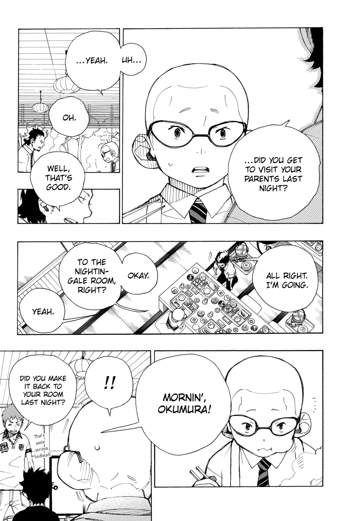 The heads of the various Myodha temple families gather to discuss recent events surrounding the Eyes of the Impure King. Revelations at the meeting only deepen suspicion of Suguro’s father, Tatsuma, and angry accusations follow. Tatsuma’s silence on the matter isn’t helping either. Amid all the swirling distrust, Rin tries to make sense of things but struggles to keep his flame in check. Then Rin receives a letter that may shed more light on the current situation – and the secret past!