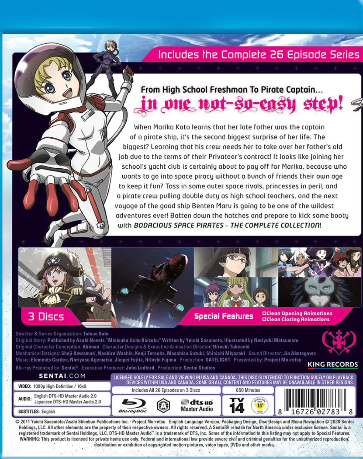 Bodacious Space Pirates Complete Collection contains episodes 1-26 of the anime directed by Tatsuo Sato.