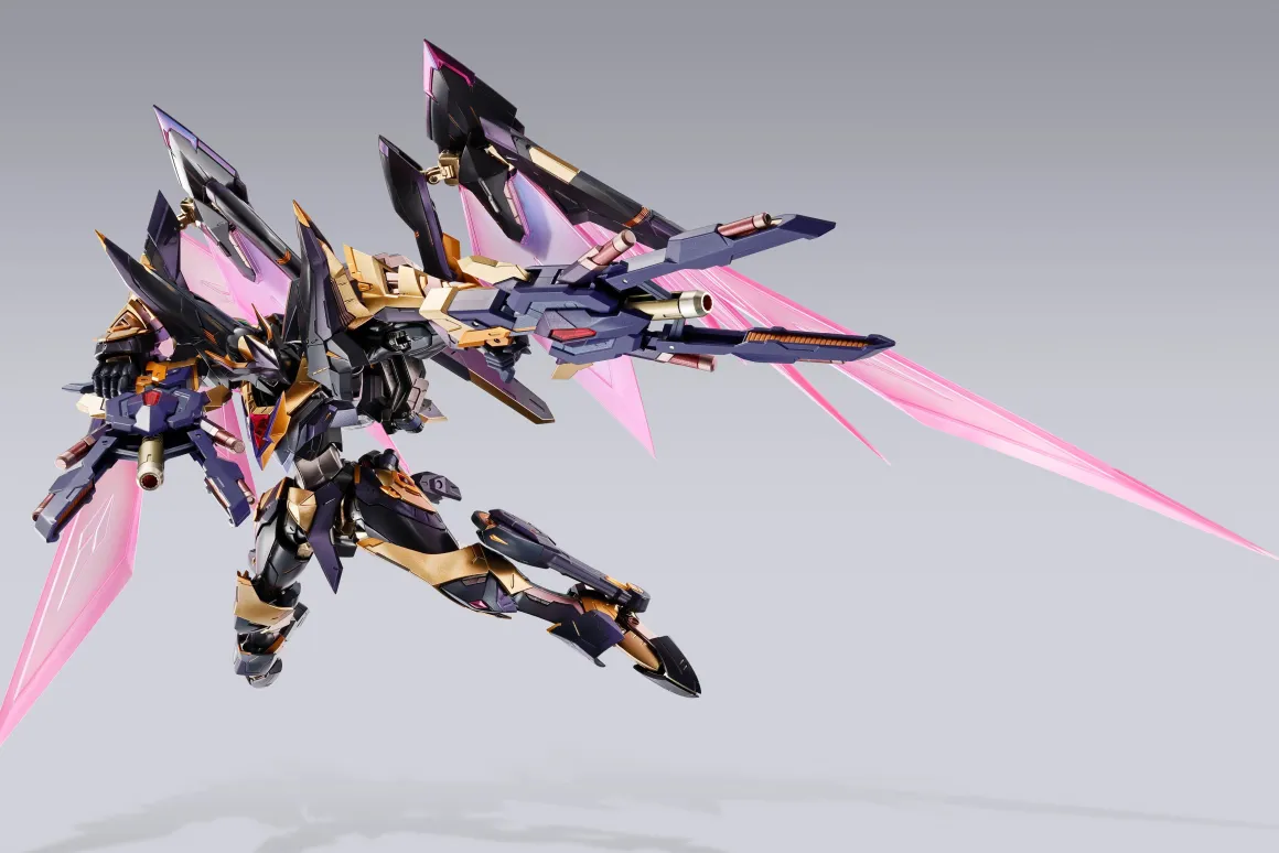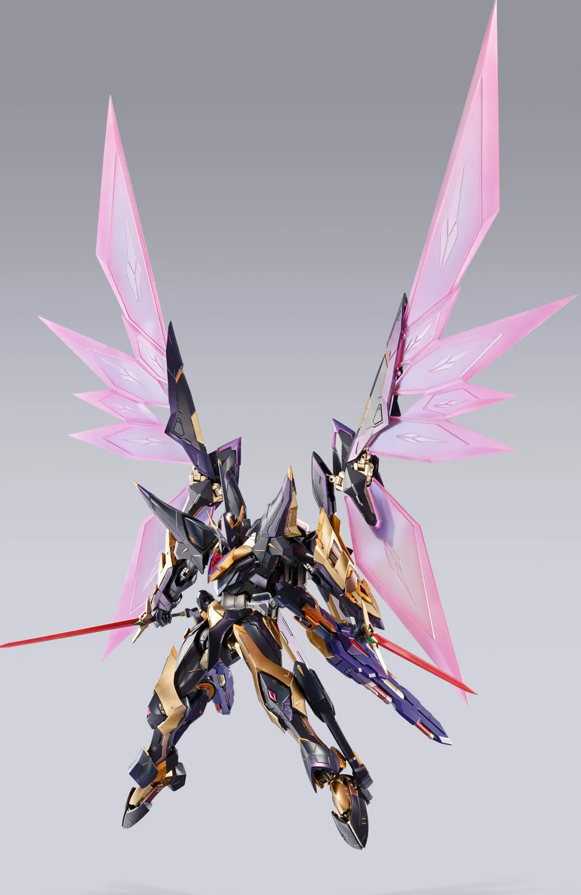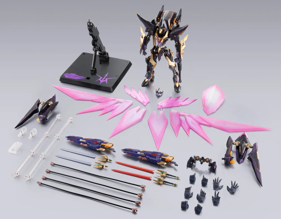 The machine piloted by Zero of the Black Knights, Lancelot Albion Zero. As the Knightmare Frame that appears in the official side story, Pure Almaria, the design provides patterns as well as colors different from the usual Albion Zero. The full face mask that conceals the identity of Lancelot is exchangeable. What’s more, clear parts are used in the chest and wing base. The energy wing also comes in a form with differing advanced generation output.