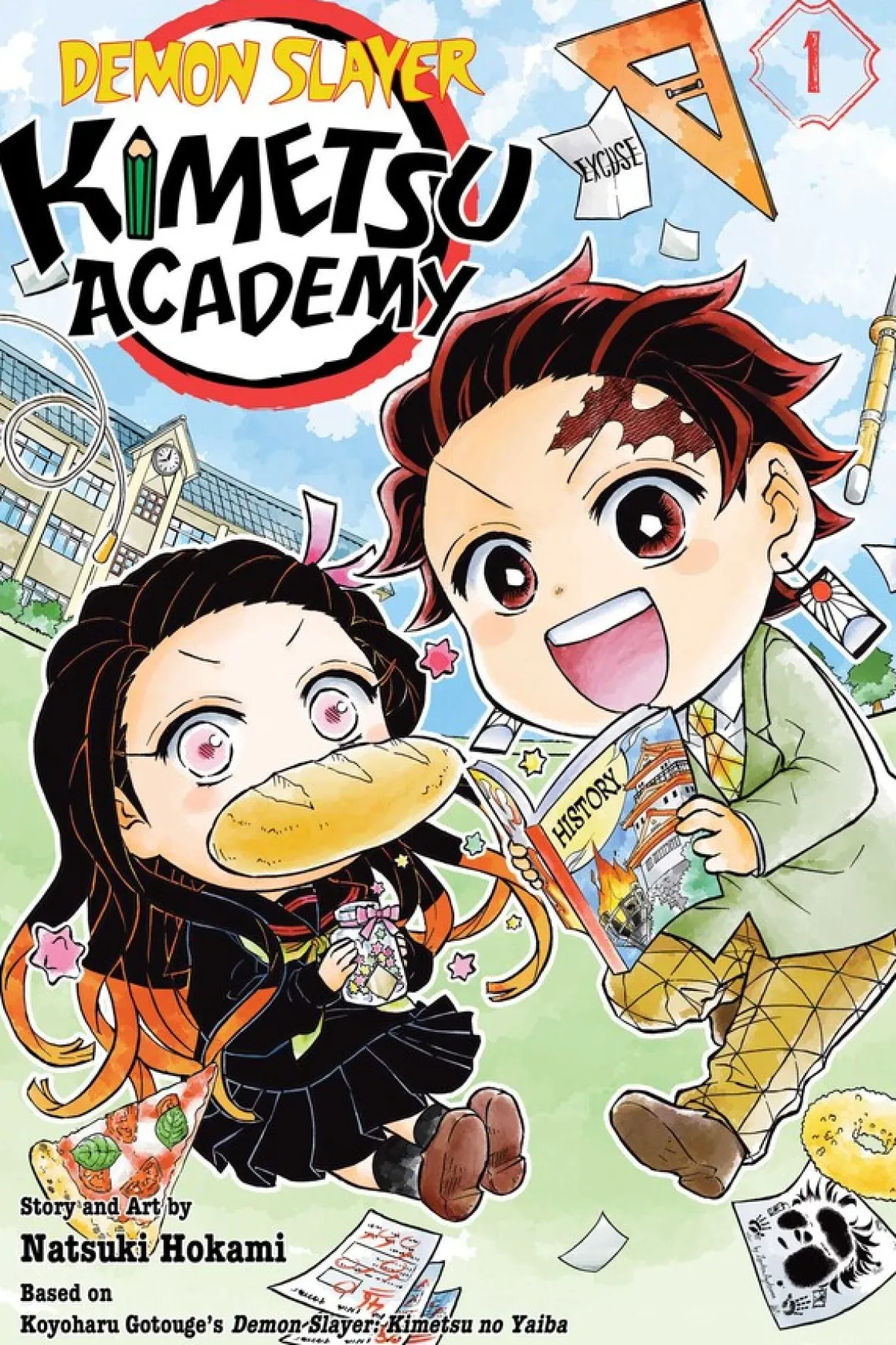 Demon Slayer: Kimetsu Academy manga volume 1 features story and art by Natsuki Hokami.
