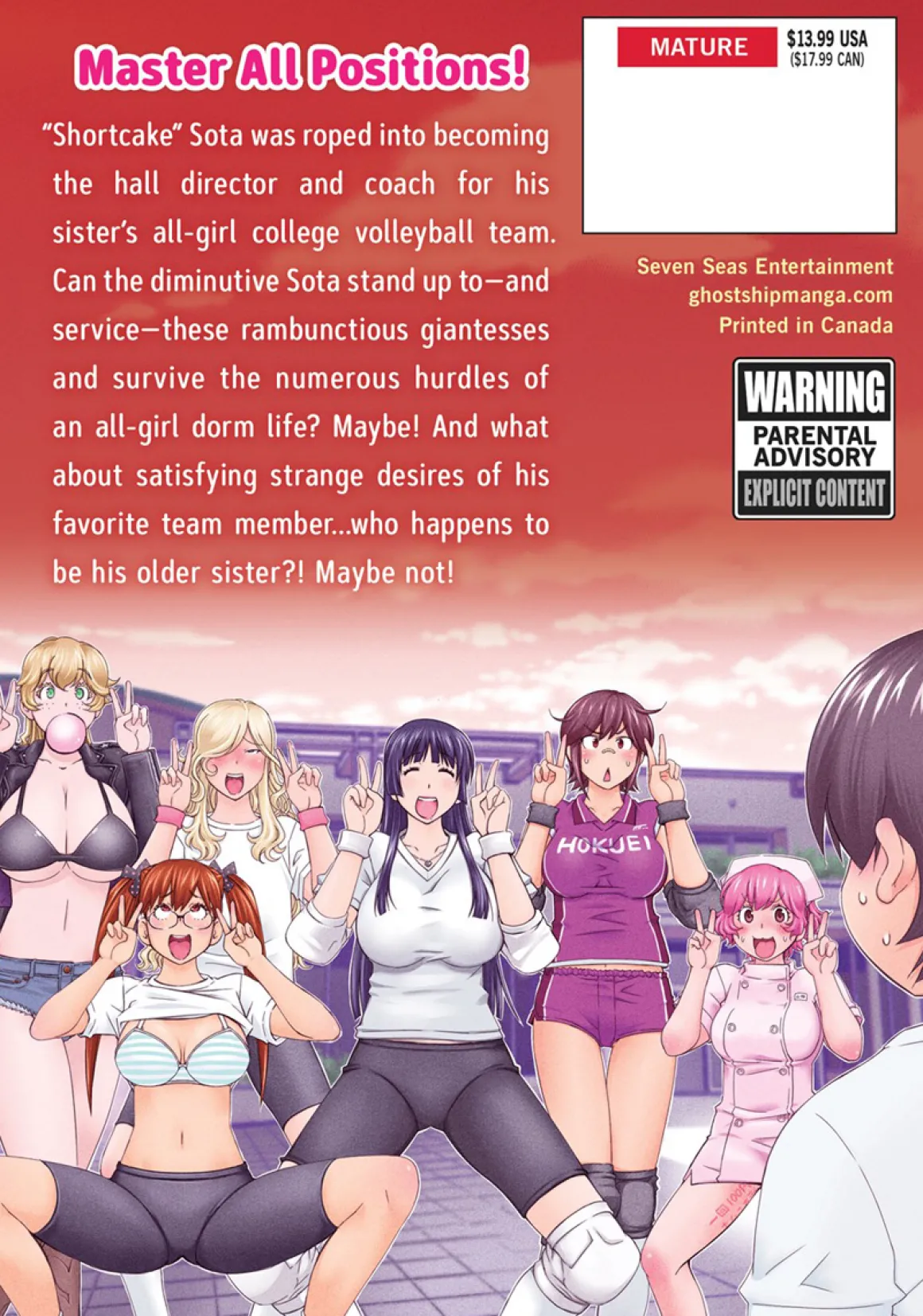 “Shortcake” Sota was roped into becoming the hall director and coach for his sister’s all-girl college volleyball team. Can the diminutive Sota stand up to—and service—these rambunctious giantesses and survive the numerous hurdles of an all-girl dorm life? Maybe! And what about satisfying strange desires of his favorite team member…who happens to be his older sister?! Maybe not!