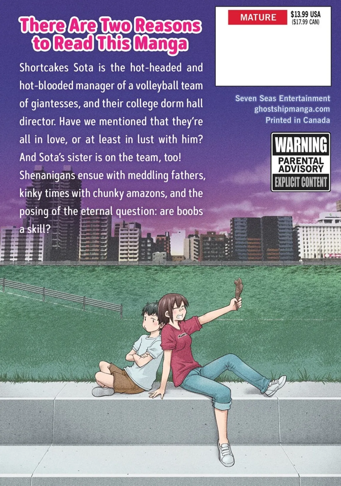 Shortcakes Sota is the hot-headed and hot-blooded manager of a volleyball team of giantesses, and their college dorm hall director. Have we mentioned that they’re all in love, or at least in lust with him? And Sota’s sister is on the team, too! Shenanigans ensue with meddling fathers, kinky times with chunky amazons, and the posing of the eternal question: are boobs a skill?