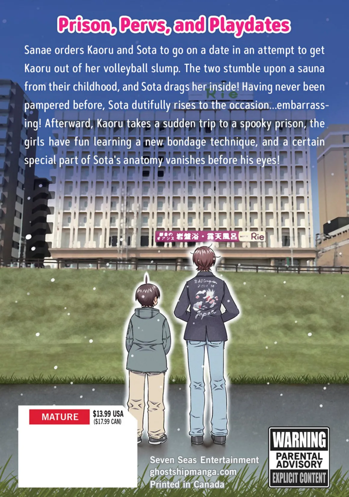 Sanae orders Kaoru and Sota to go on a date in an attempt to get Kaoru out of her volleyball slump. The two stumble upon a sauna from their childhood, and Sota drags her inside! Having never been pampered before, Sota dutifully rises to the occasion…embarrassing! Afterward, Kaoru takes a sudden trip to a spooky prison, the girls have fun learning a new bondage technique, and a certain special part of Sota’s anatomy vanishes before his eyes!