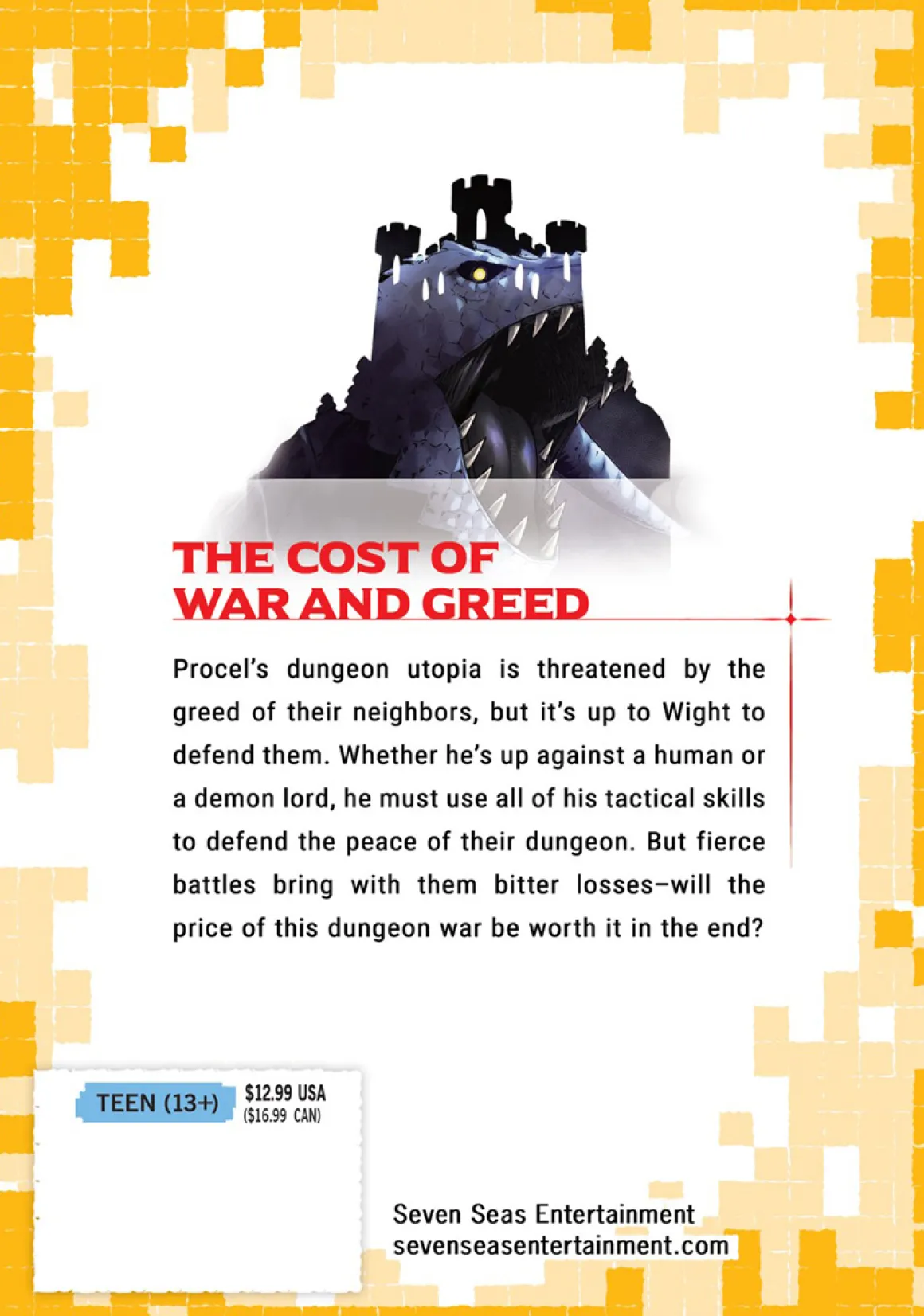 Procel’s dungeon utopia is threatened by the greed of their neighbors, but it’s up to Wight to defend them. Whether he’s up against a human or a demon lord, he must use all of his tactical skills to defend the peace of their dungeon. But fierce battles bring with them bitter losses—will the price of this dungeon war be worth it in the end?