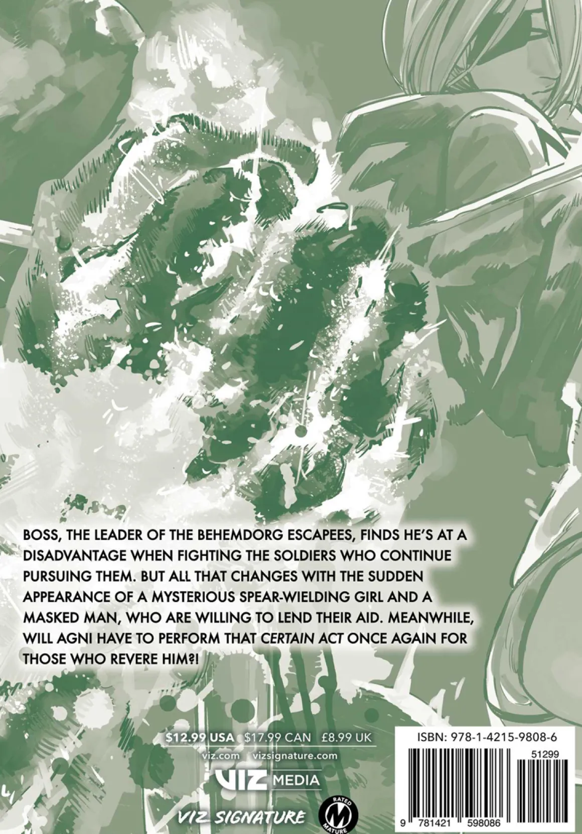Boss, the leader of the Behemdorg escapees, finds he’s at a disadvantage when fighting the soldiers who continue pursuing them. But all that changes with the sudden appearance of a mysterious spear-wielding girl and a masked man who are willing to lend their aid. Meanwhile, will Agni have to perform that certain act once again for those who revere him?!