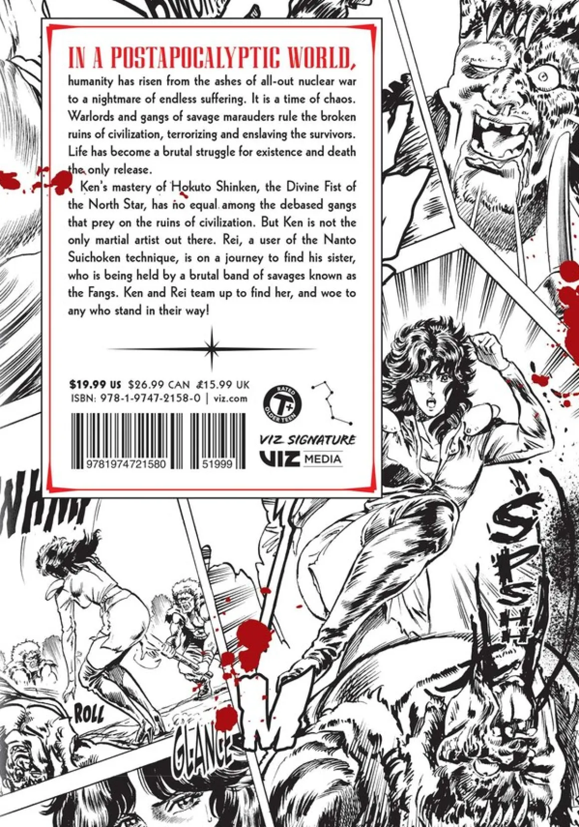 Ken’s mastery of Hokuto Shinken, the Divine Fist of the North Star, has no equal among the debased gangs that prey on the ruins of civilization. But Ken is not the only martial artist out there. Rei, a user of the Nanto Suichoken technique, is on a journey to find his sister, who is being held by a brutal band of savages known as the Fangs. Ken and Rei team up to find her, and woe to any who stand in their way!