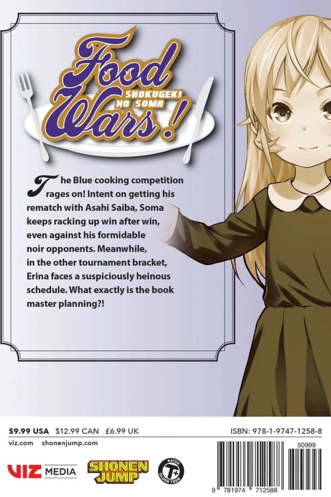 The Blue cooking competition rages on! Intent on getting his rematch with Asahi Saiba, Soma keeps racking up win after win, even against his formidable noir opponents. Meanwhile, in the other tournament bracket, Erina faces a suspiciously heinous schedule. What exactly is the book master planning?