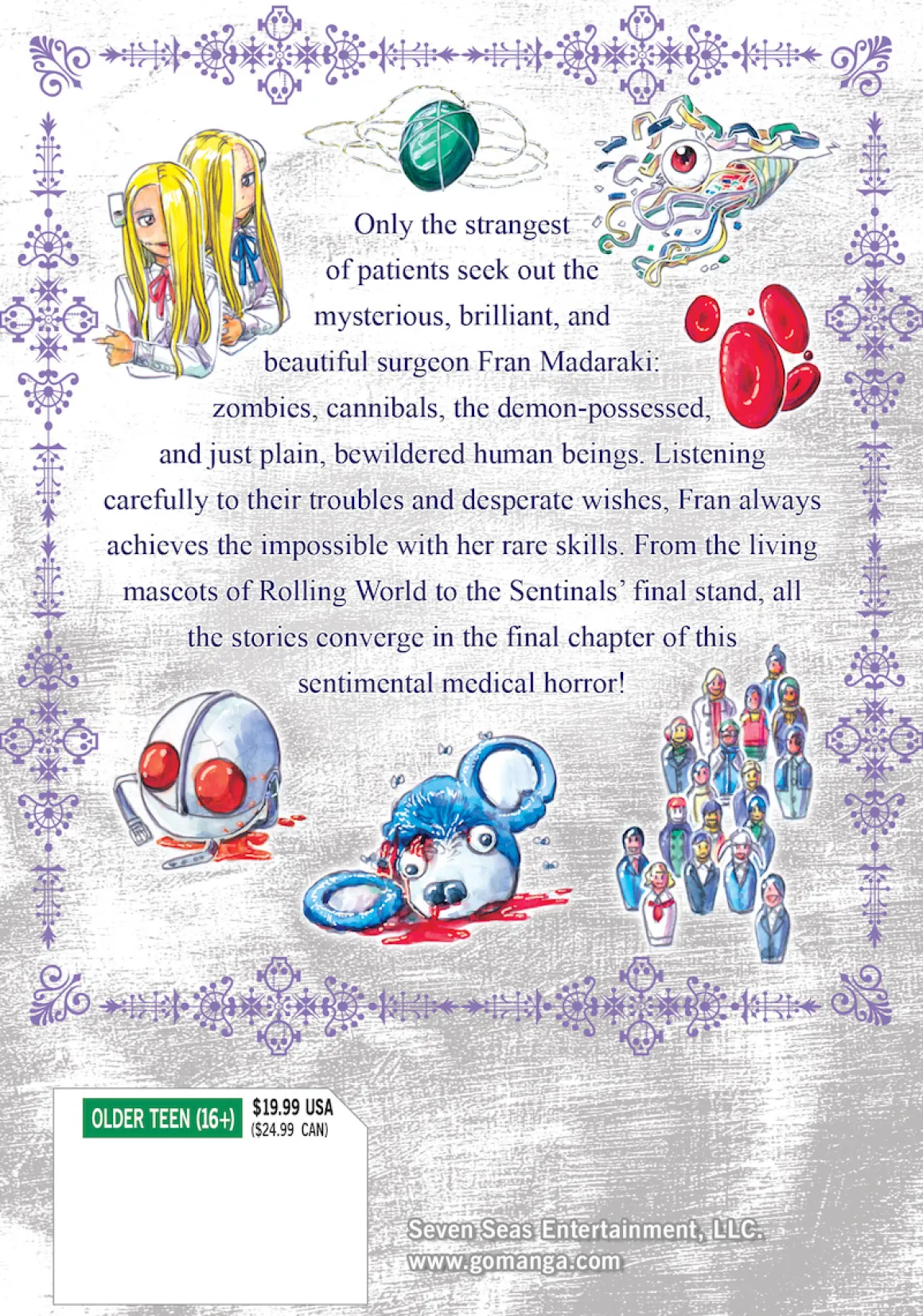 Only the strangest of patients seek out the mysterious, brilliant and beautiful surgeon Fran Madaraki: zombies, cannibals, the demon-possessed, and just plain, bewildered human beings. Listening carefully to their troubles and desperate wishes, Fran always achieves the impossible with her rare skills. From the living mascots of Rolling World to the Sentinals’ final stand, all the stories converge in the final chapter of this sentimental medical horror!