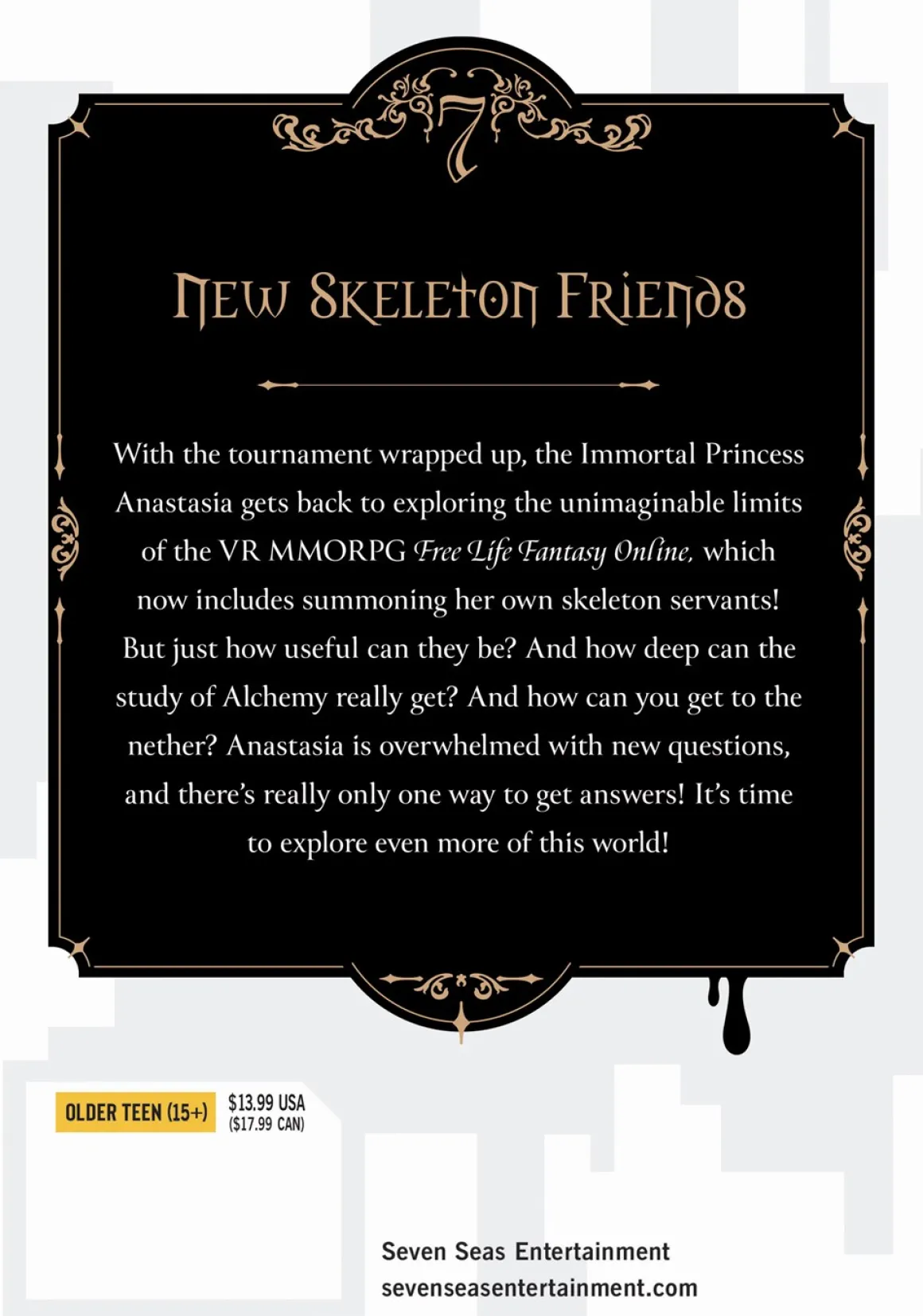 With the tournament wrapped up, the Immortal Princess Anastasia gets back to exploring the unimaginable limits of the VR MMORPG Free Life Fantasy Online, which now includes summoning her own skeleton servants! But just how useful can they be? And how deep can the study of Alchemy really get? And how can you get to the nether? Anastasia is overwhelmed with new questions, and there’s really only one way to get answers! It’s time to explore even more of this world!