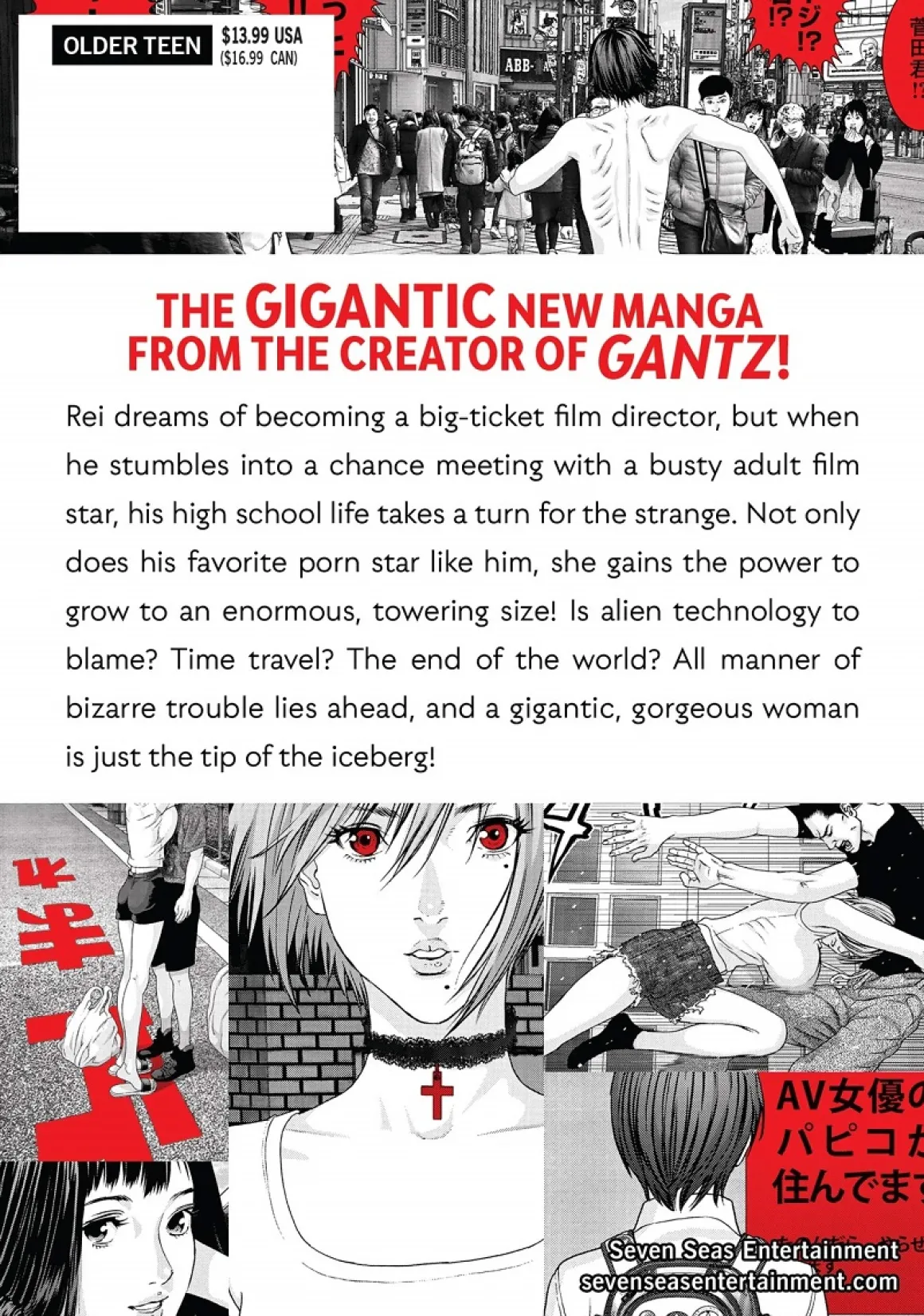 Rei dreams of becoming a big-ticket film director, but when he stumbles into a chance meeting with a busty adult film star, his high school life takes a turn for the strange. Not only does his favorite porn star like him, she gains the power to grow to an enormous, towering size! Is alien technology to blame? Time travel? The end of the world? All manner of bizarre trouble lies ahead, and a gigantic, gorgeous woman is just the tip of the iceberg!