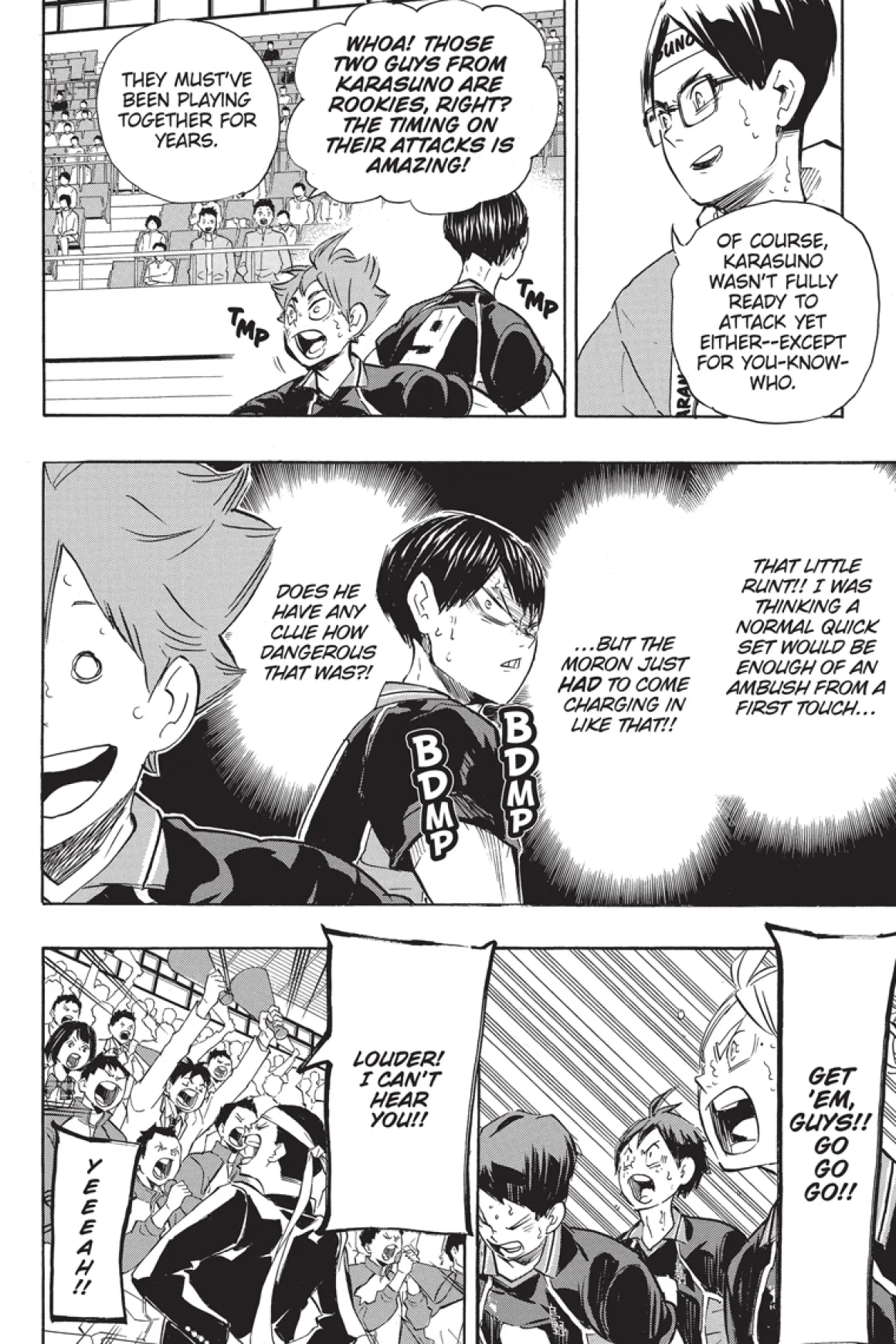 The fifth set of the Miyagi Prefecture qualifier round finals continues. With Tsukishima out of the game, Karasuno’s defense is starting to fall apart. However, they’re determined to keep it together. With both teams physically and mentally exhausted, which one will keep it together the longest and move on to Nationals?