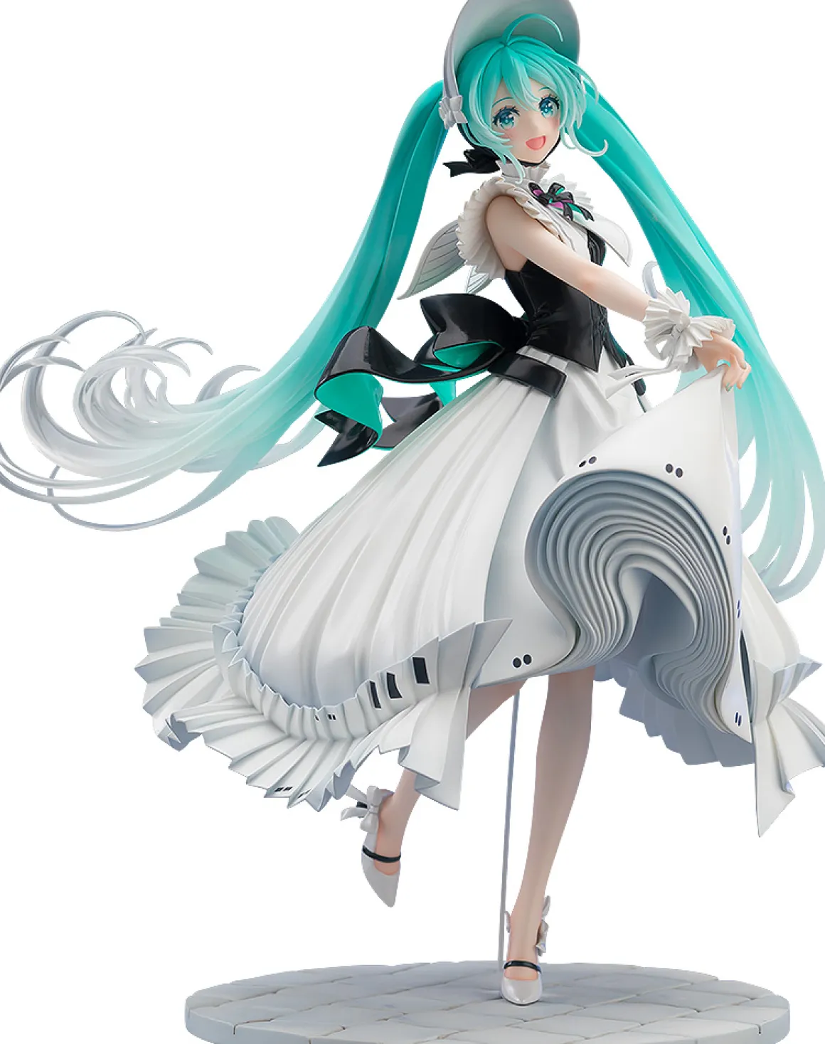 From “Character Vocal Series 01: Hatsune Miku” comes a scale figure of Hatsune Miku based on the key visual illustration of Hatsune Miku Symphony 2023! Illustrator Rella’s fantastic, beautiful main visual illustration has been carefully brought into figure form. The elegant outfit that features motifs from the concert hall has been carefully recreated in figure form, down to the smallest details. Translucent parts have been used for the twintails for a light and airy appearance. Be sure to welcome the dazzling and charming Miku to your collection.