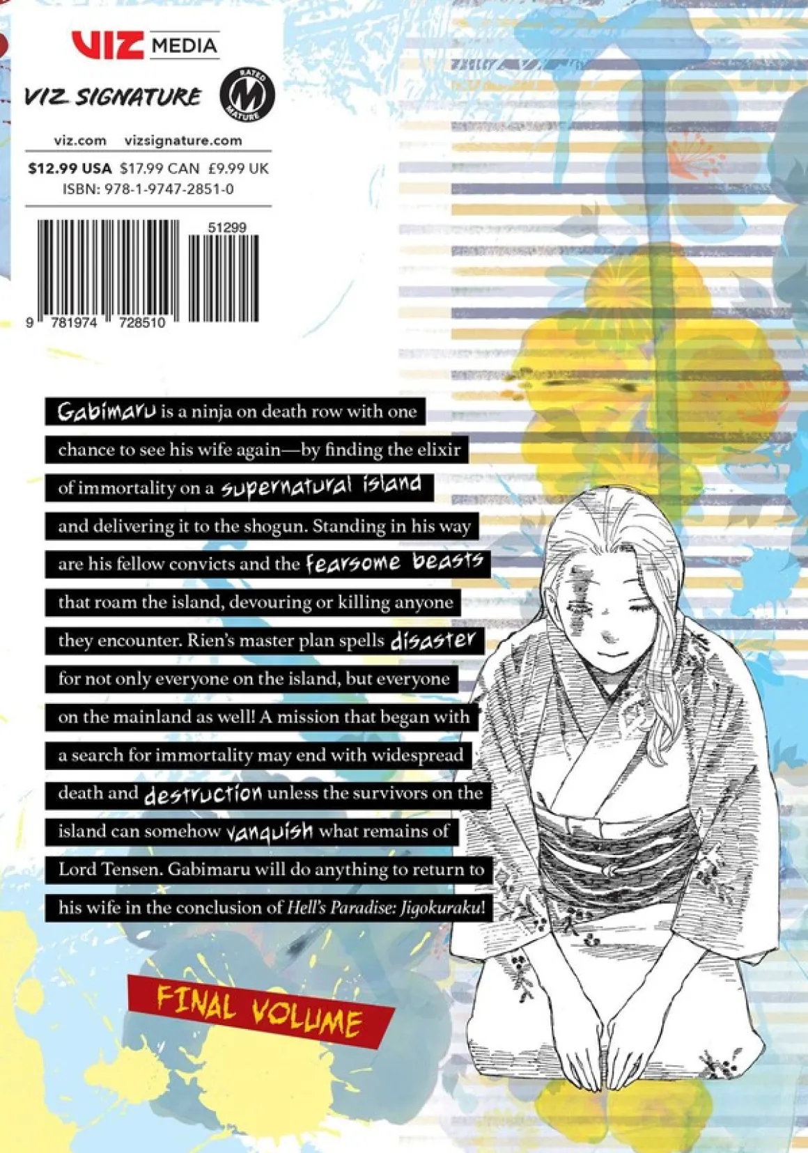 Rien’s master plan spells disaster for not just everyone on the island, but everyone on the mainland as well! A mission that began with a search for immortality may end with widespread death and destruction unless the survivors on the island can somehow vanquish what remains of Lord Tensen. Gabimaru will do anything to return to his wife in the conclusion of Hell’s Paradise: Jigokuraku!