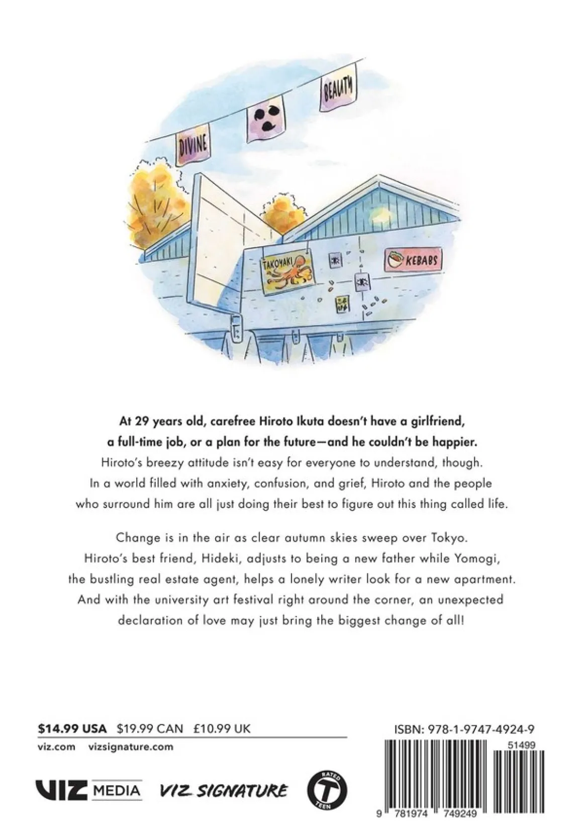 Change is in the air as the clear autumn skies sweep over Tokyo. Hiroto’s best friend, Hideki, adjusts to being a new father while Yomogi, the bustling real estate agent, helps a lonely writer look for a new apartment. And with the university arts festival right around the corner, an unexpected declaration of love may just bring the biggest change of all!