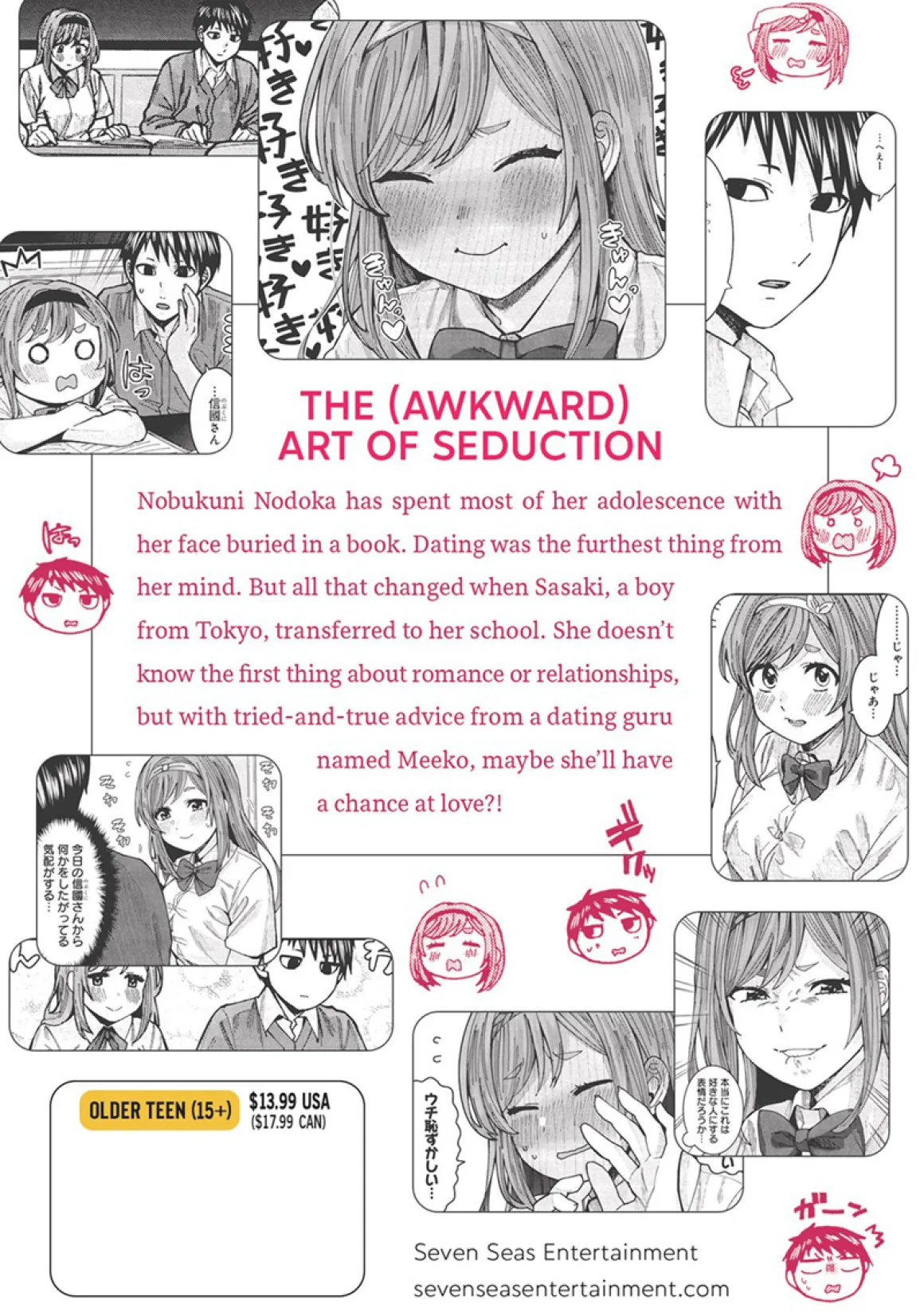Nobukuni Nodoka has spent most of her adolescence with her face buried in a book. Dating was the furthest thing from her mind. But all that changed when Sasaki, a boy from Tokyo, transferred to her school. She doesn’t know the first thing about romance or relationships, but with tried-and-true advice from a dating guru named Meeko, maybe she’ll have a chance at love?!