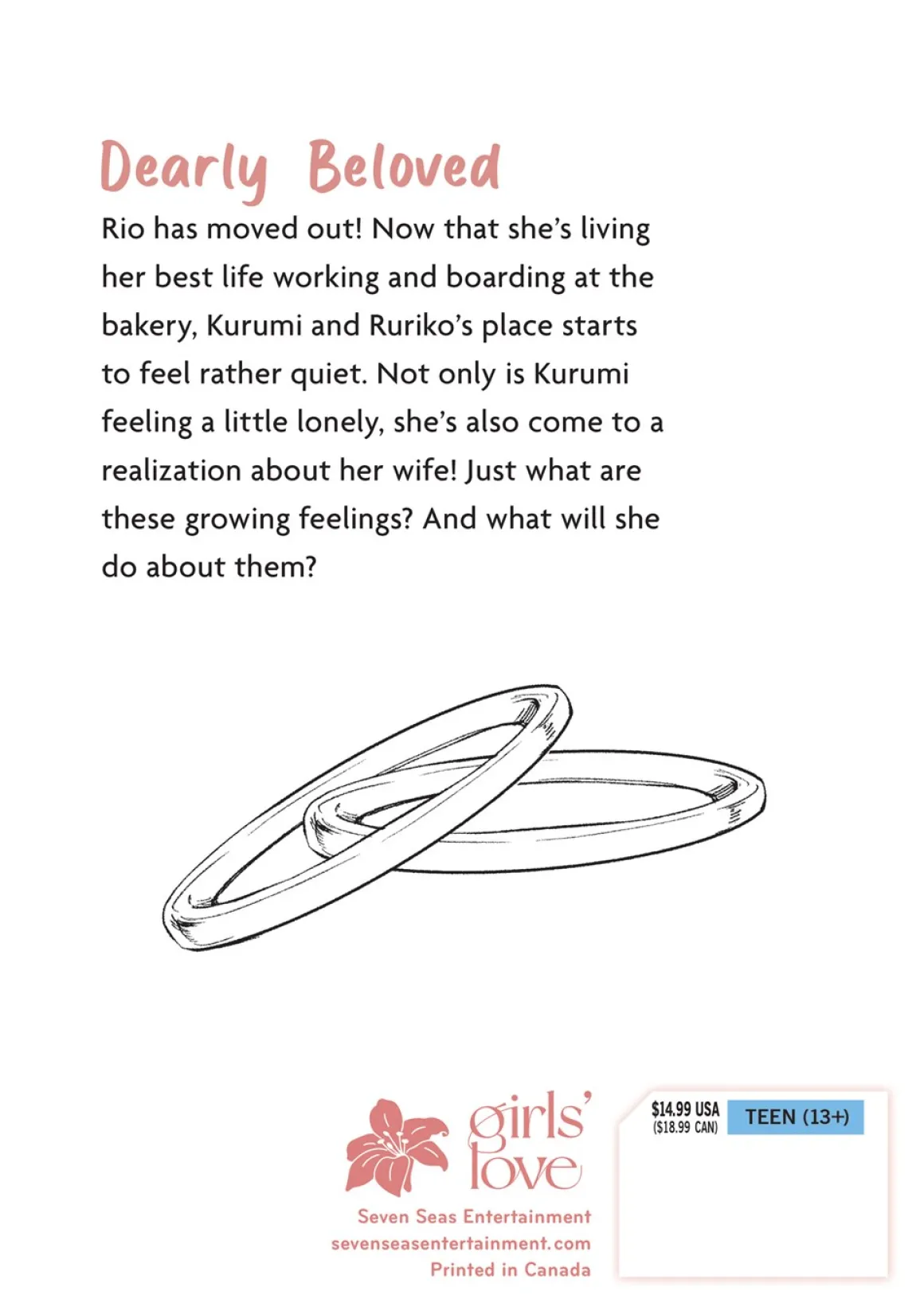 Rio has moved out! Now that she’s living her best life working and boarding at the bakery, Kurumi and Ruriko’s place starts to feel rather quiet. Not only is Kurumi feeling a little lonely, she’s also come to a realization about her wife! Just what are these growing feelings? And what will she do about them?