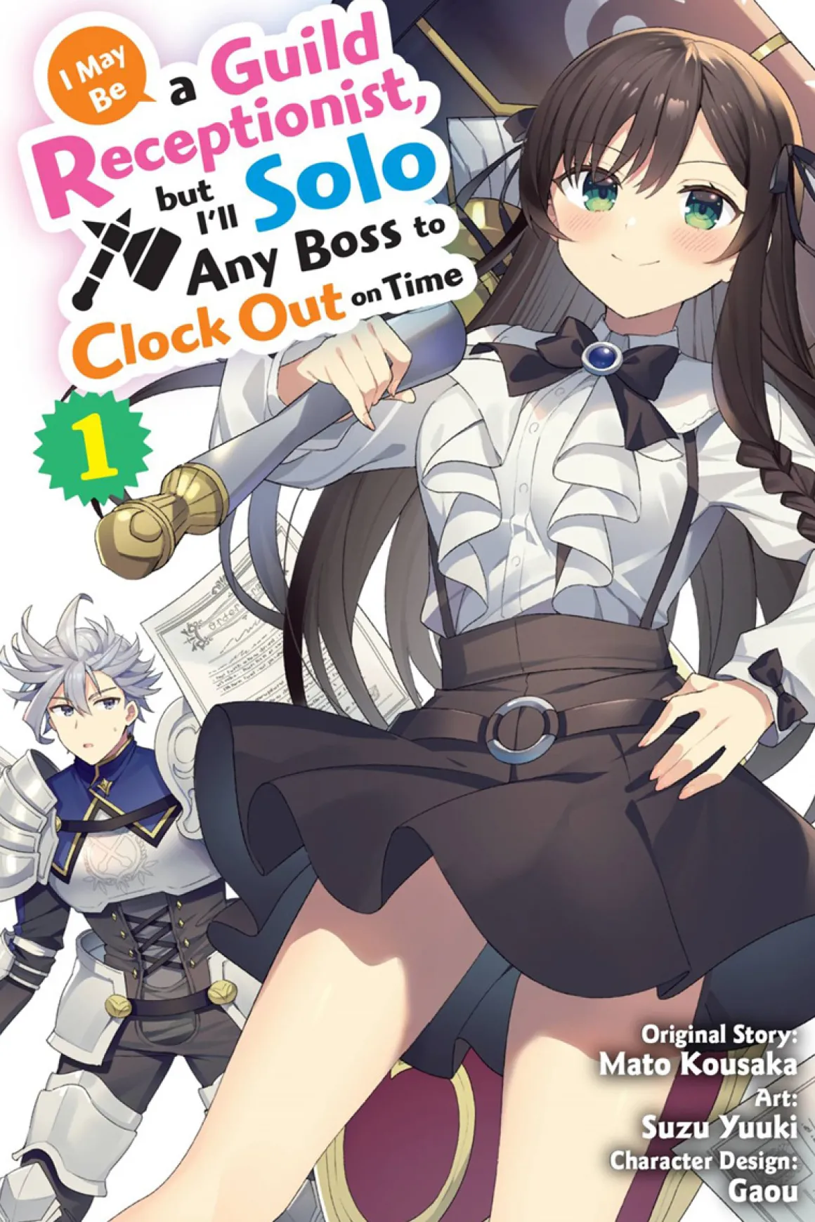 I May Be a Guild Receptionist, but I’ll Solo Any Boss to Clock Out on Time Manga Volume 1 features story by Mato Kousaka and art by Suzu Yuuki.
