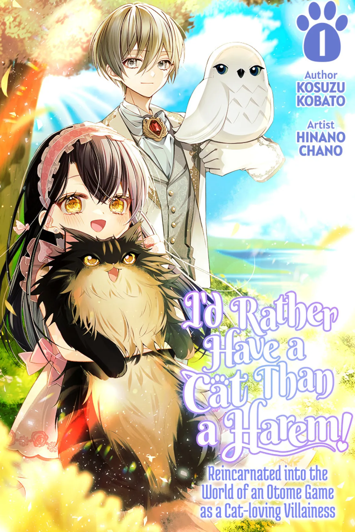 I’d Rather Have a Cat than a Harem! Reincarnated Into the World of an Otome Game as a Cat-Loving Villainess novel volume 1 was written by Kosuzu Kobato with illustrations by Hinano Chano.
