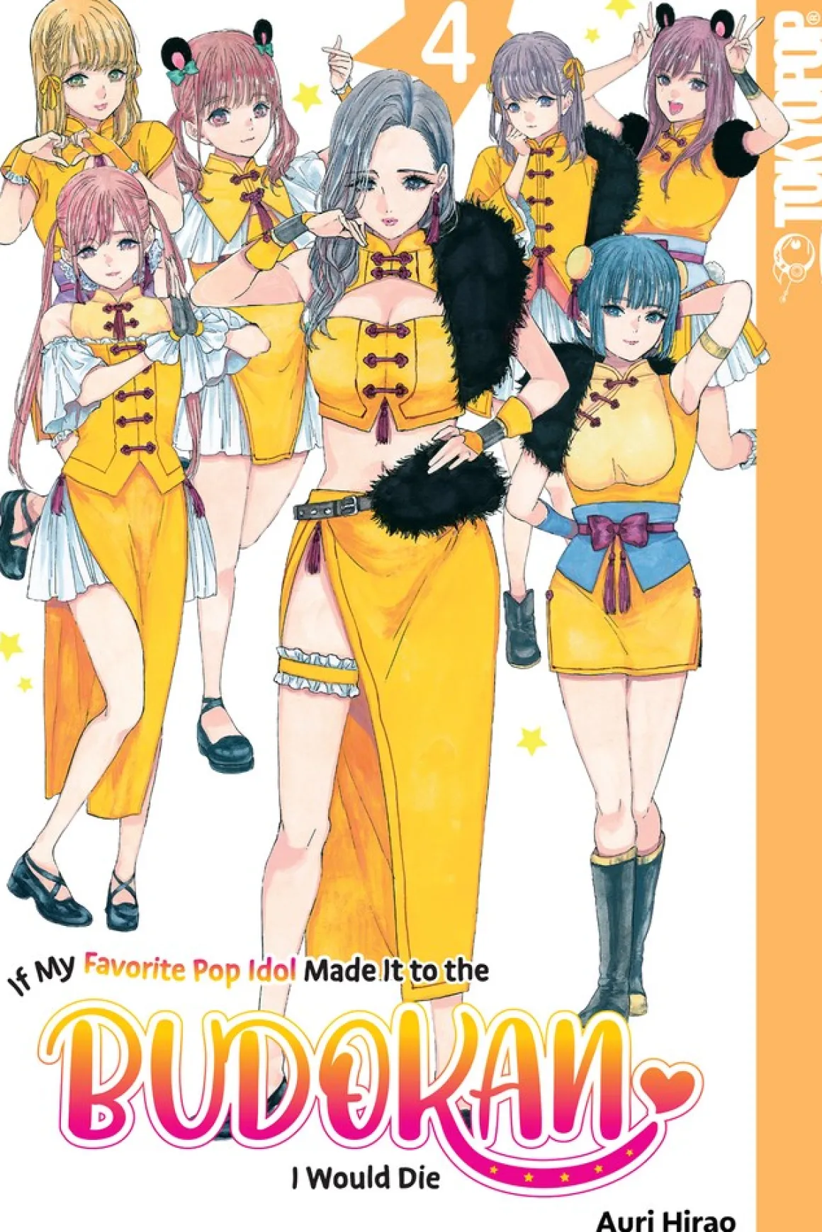 If My Favorite Pop Idol Made It to the Budokan, I Would Die Manga Volume 4 features story and art by Auri Hirao.