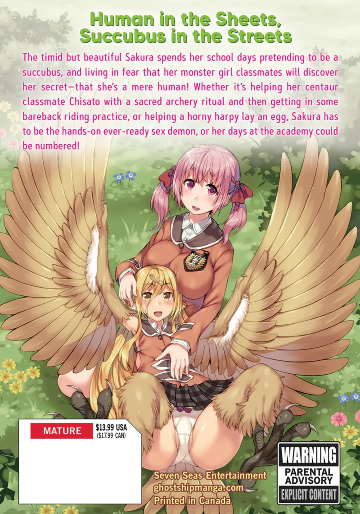 The timid but beautiful Sakura spends her school days pretending to be a succubus, and living in fear that her monster girl classmates will discover her secret—that she’s a mere human! Whether it’s helping her centaur classmate Chisato with a sacred archery ritual and then getting in some bareback riding practice, or helping a horny harpy lay an egg, Sakura has to be the hands-on ever-ready sex demon, or her days at the academy could be numbered!