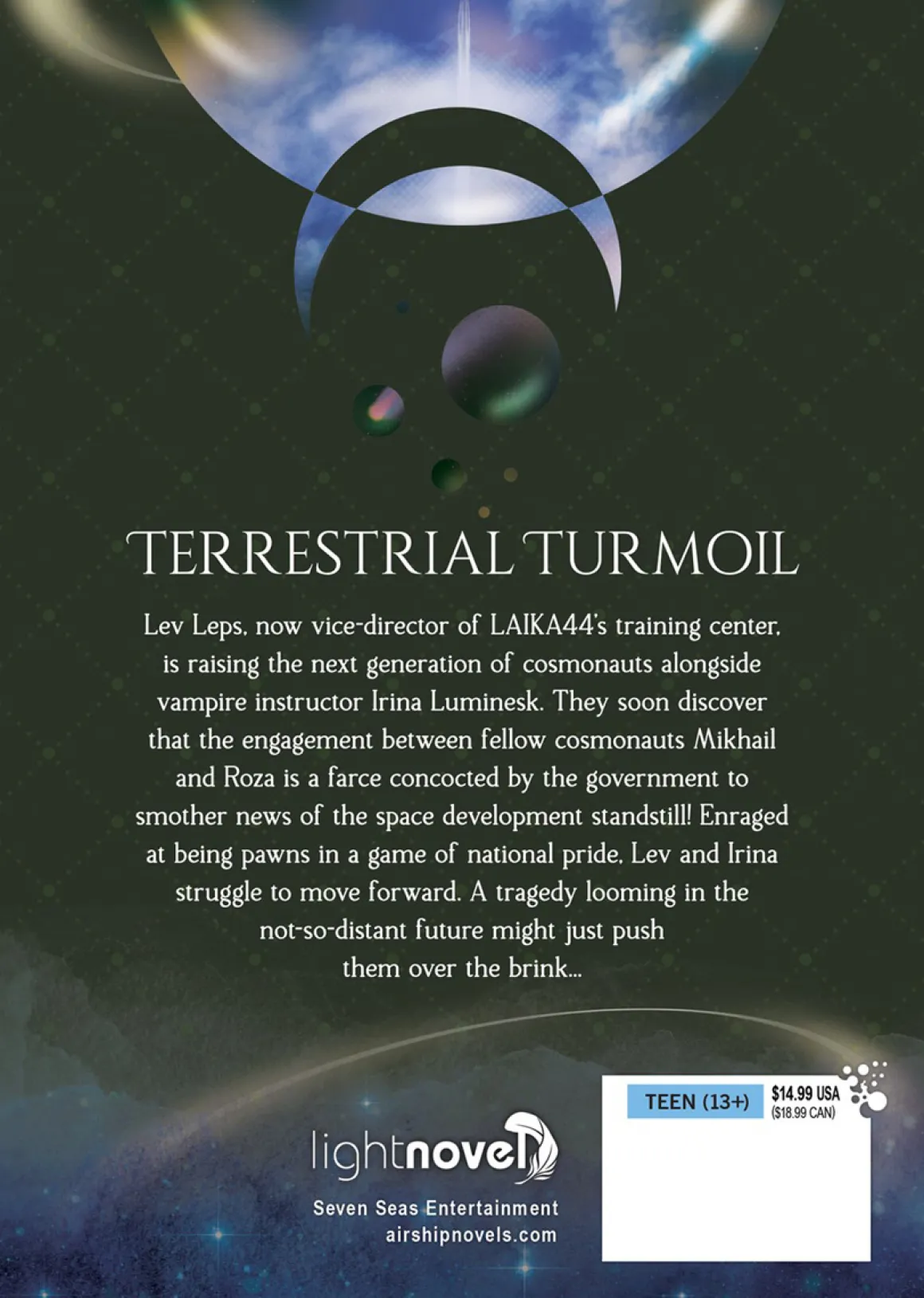 Lev Leps, now vice-director of LAIKA44’s training center, is raising the next generation of cosmonauts alongside vampire instructor Irina Luminesk. They soon discover that the engagement between fellow cosmonauts Mikhail and Roza is a farce concocted by the government to smother news of the space development standstill! Enraged at being pawns in a game of national pride, Lev and Irina struggle to move forward. A tragedy looming in the not-so-distant future might just push them over the brink…