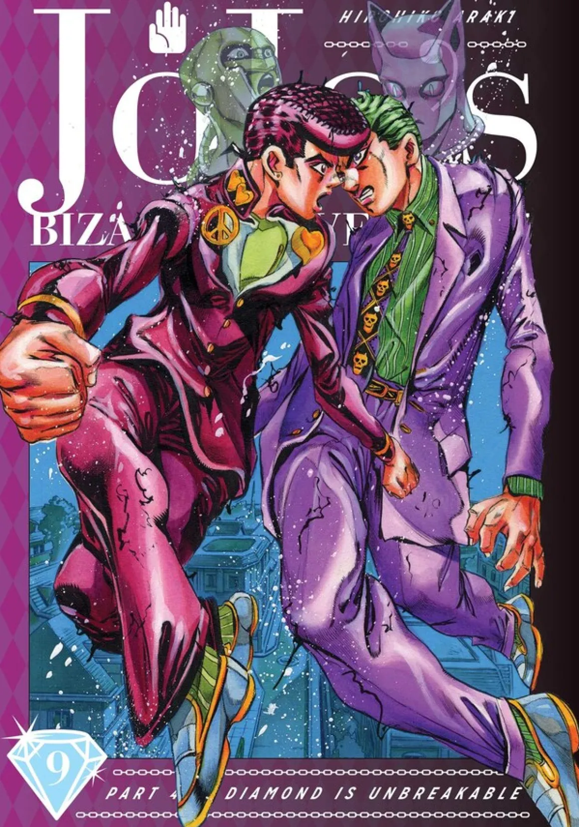 JoJo’s Bizarre Adventure Part 4: Diamond is Unbreakable manga volume 9 features story and art by Hirohiko Araki.
