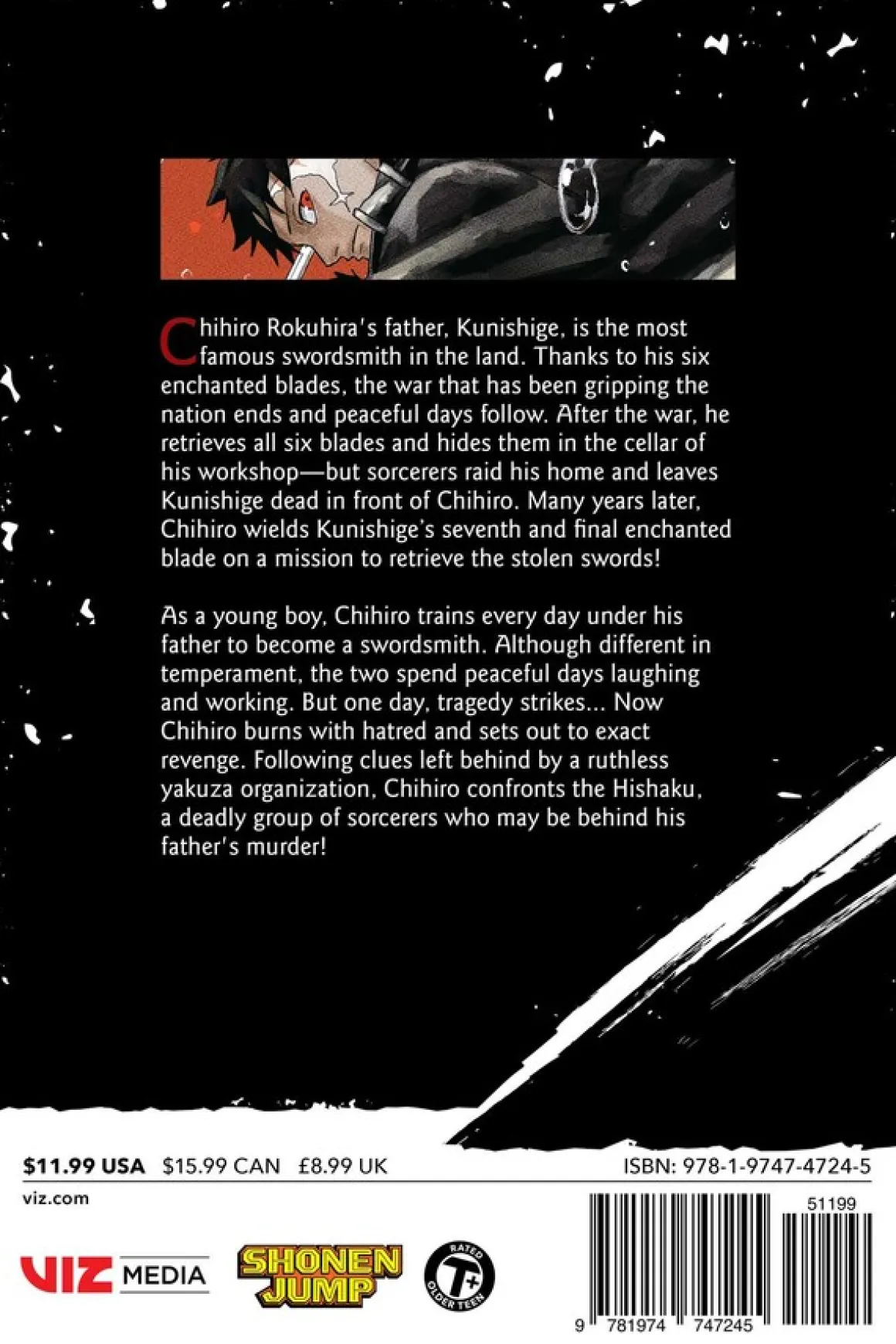 Kunishige Rokuhira is the most famous swordsmith in the land. Thanks to his six enchanted blades, the war that had been gripping the nation ended and peaceful days followed. After the war, he retrieved all six blades and hid them in the cellar of his workshop. However, sorcerers raided his home, stole the legendary swords, and left Kunishige dead in front of his son, Chihiro. Now Chihiro wields Kunishige’s seventh and final enchanted blade on a mission to exact revenge and retrieve the swords his father forged.