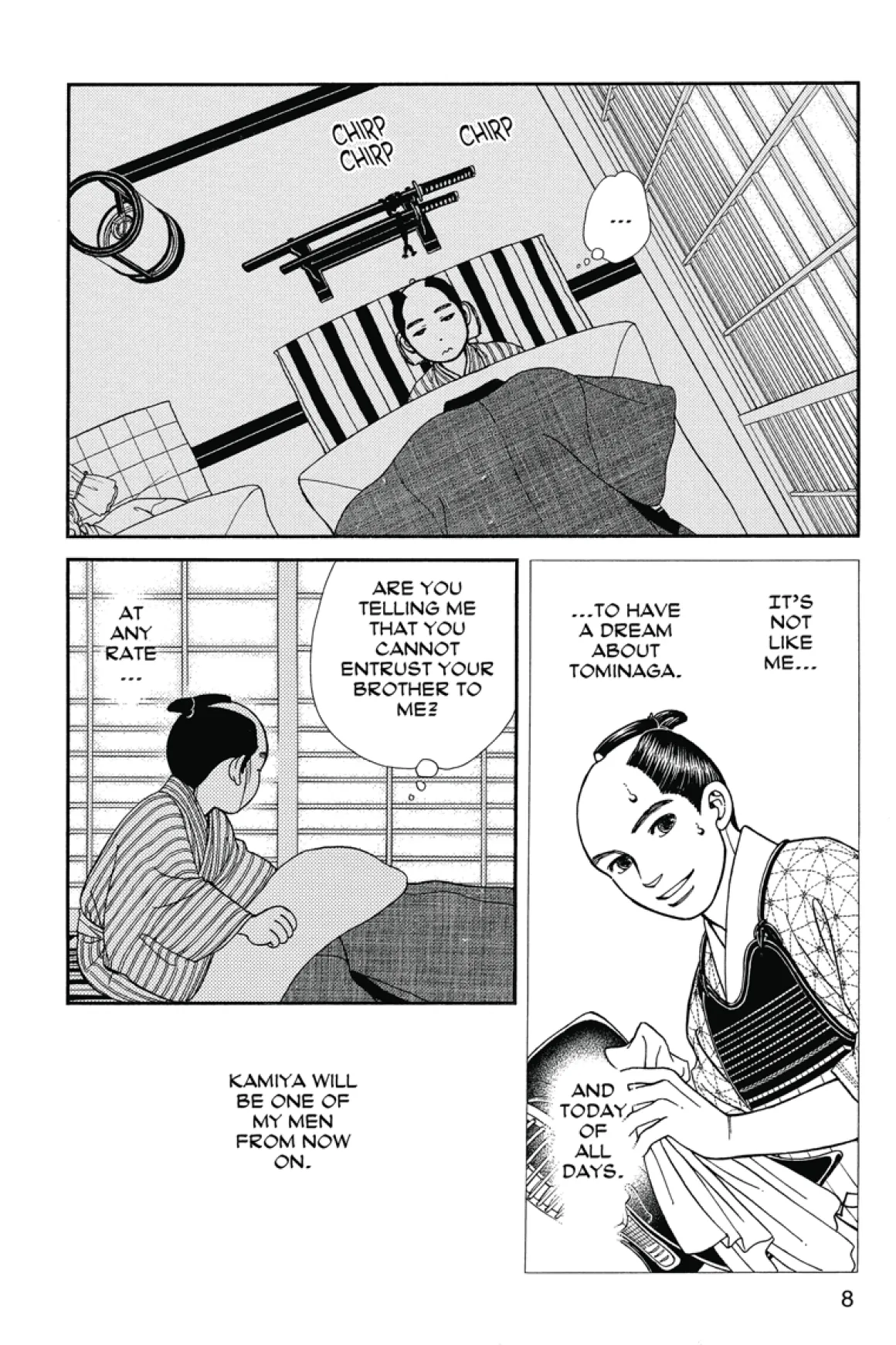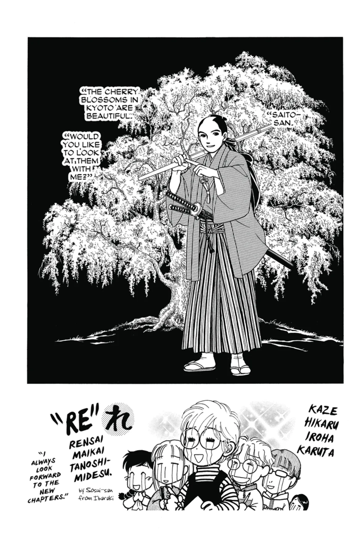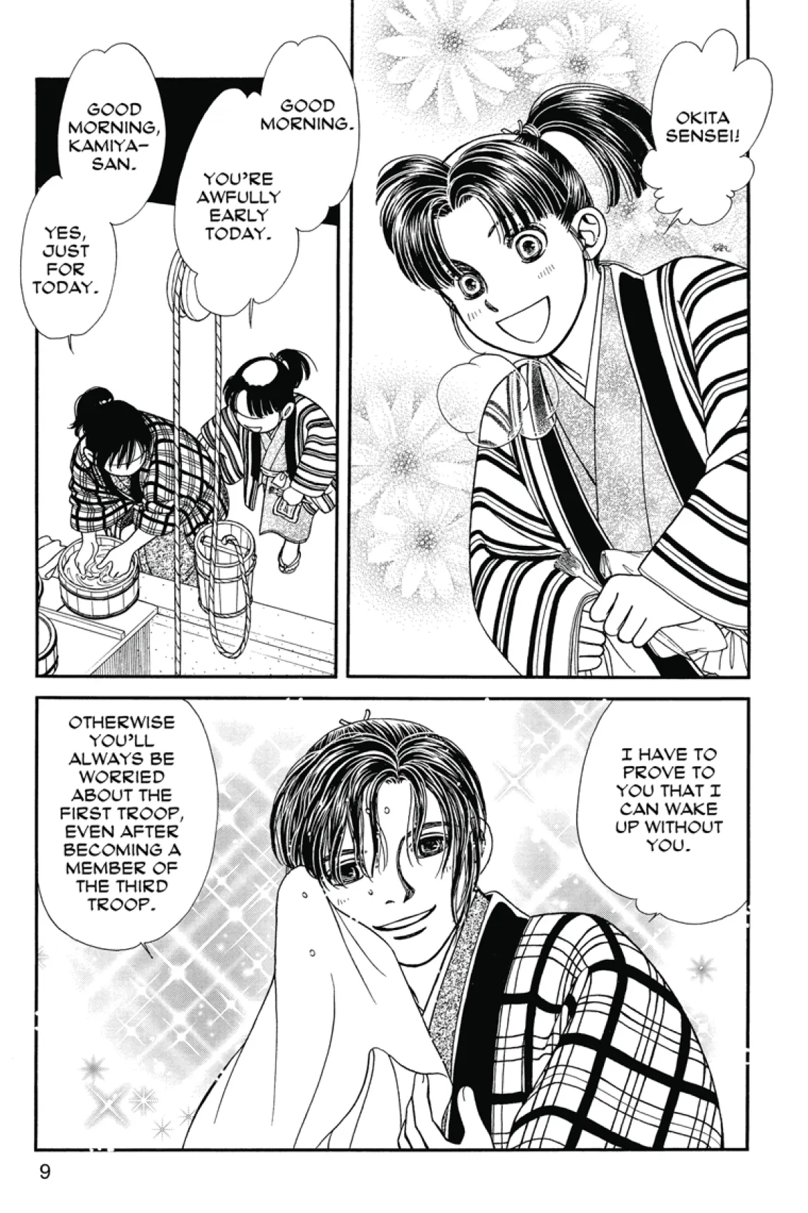 Feeling he must protect her, Saito confronts Soji with an ultimatum: expose Sei to Hijitaka and have her dismissed from the troop, or allow Saito to take her as his bride.