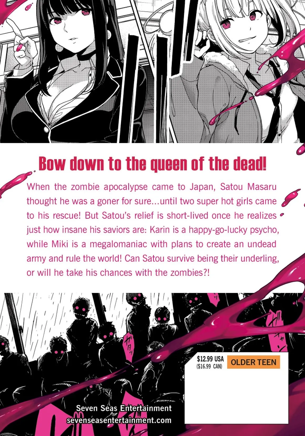 When the zombie apocalypse came to Japan, Satou Masaru thought he was a goner for sure…until two super hot girls came to his rescue! But Satou’s relief is short-lived once he realizes just how insane his saviors are: Karin is a happy-go-lucky psycho, while Miki is a megalomaniac with plans to create an undead army and rule the world! Can Satou survive being their underling, or will he take his chances with the zombies?!