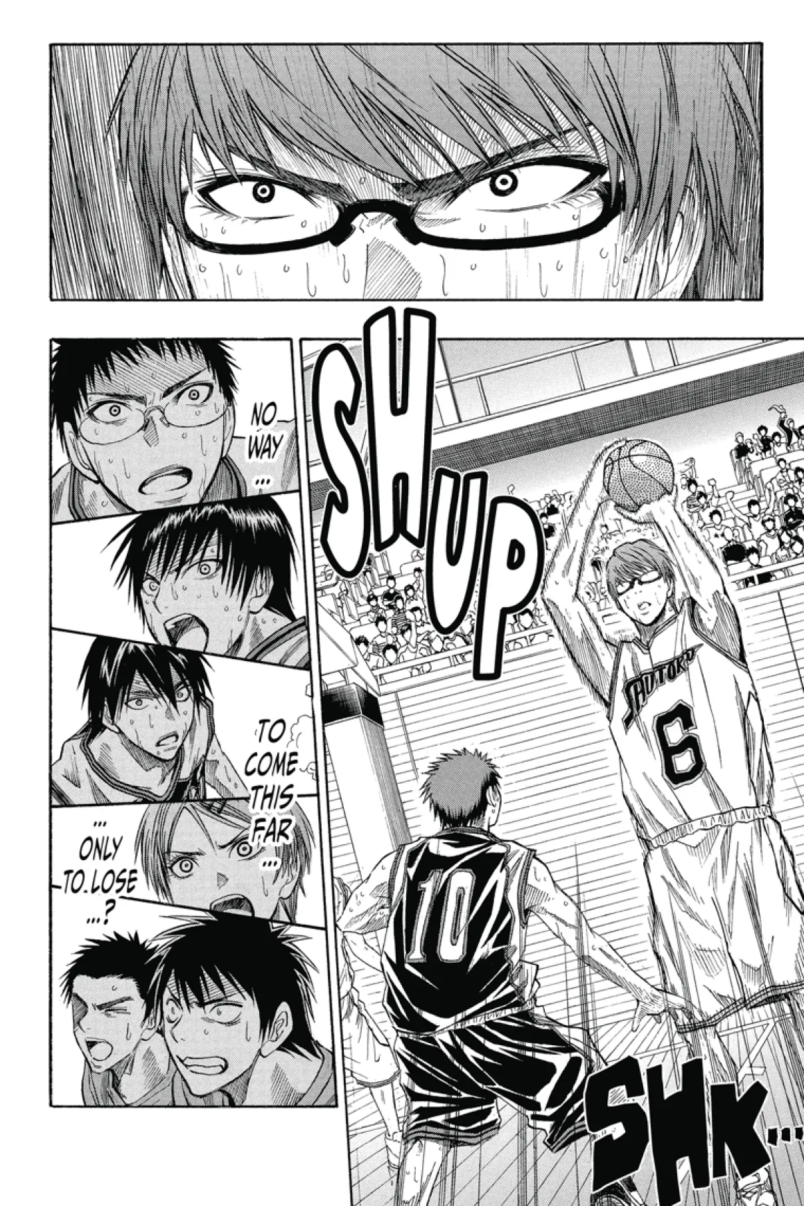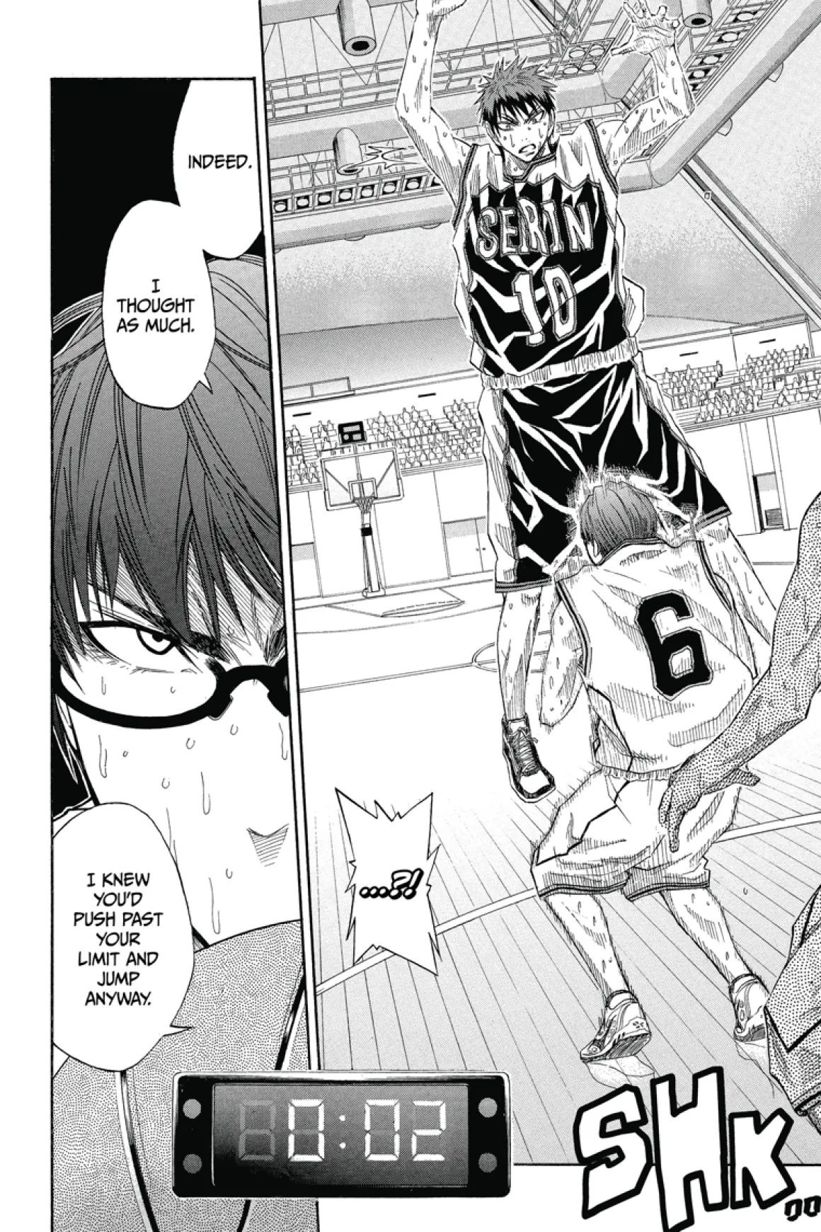 Aiming for the finals league, Seirin has challenged Shutoku and their ace, Midorima. The team’s fired up thanks to Kagami, but is there any guarantee that fire won’t be quickly extinguished by the sharp-shooting Midorima?! Meanwhile, a friend from Kuroko’s middle school suddenly shows up before the team and shocks everyone by revealing some insight into Kuroko’s mysterious past!