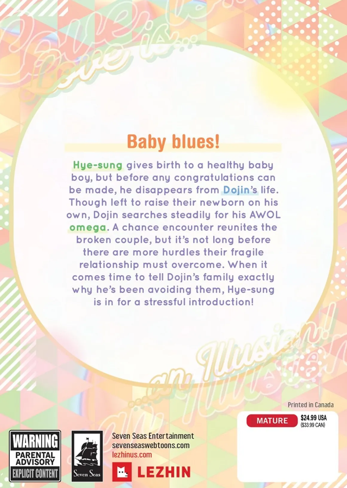 Hye-sung gives birth to a healthy baby boy, but before any congratulations can be made, he disappears from Dojin’s life. Though left to raise their newborn on his own, Dojin searches steadily for his AWOL omega. A chance encounter reunites the broken couple, but it’s not long before there are more hurdles their fragile relationship must overcome. When it comes time to tell Dojin’s family exactly why he’s been avoiding them, Hye-sung is in for a stressful introduction!
