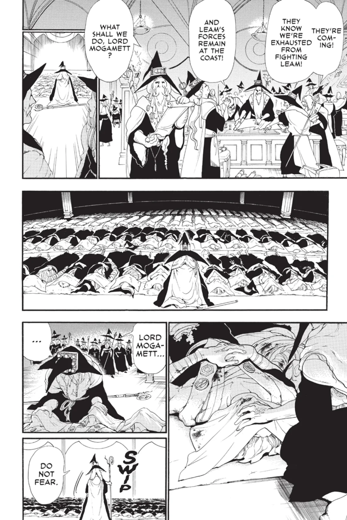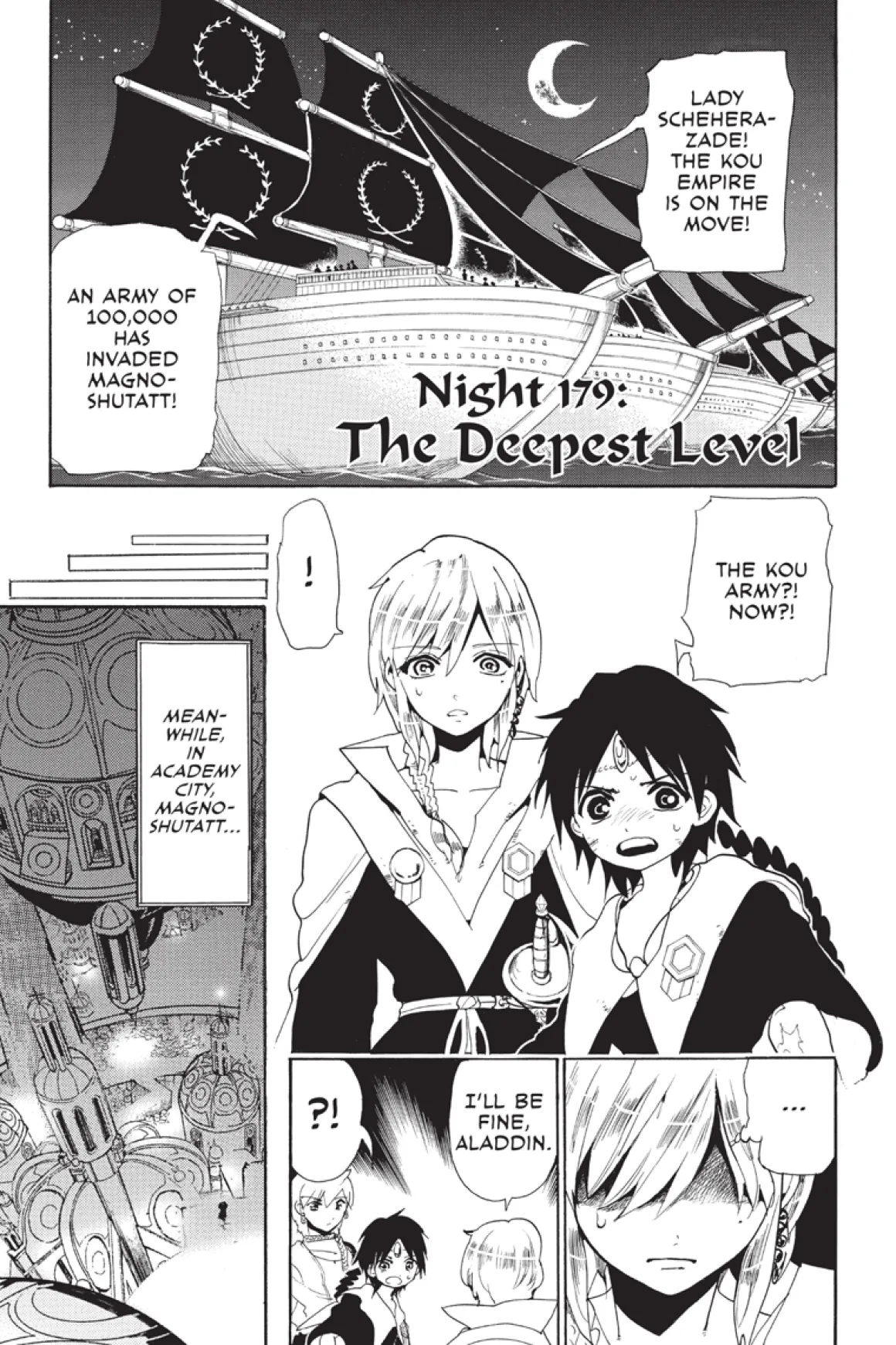 Magomett, the leader of Magnoshutatt, learns that the Kou Empire plans to attack while the city is weak from fighting against Leam. In desperation, he uses the Magoi Reactor to create a terrifying blackness in the sky. The very essence of the world is now threatened and Aladdin must summon his most powerful allies to try to stop it!