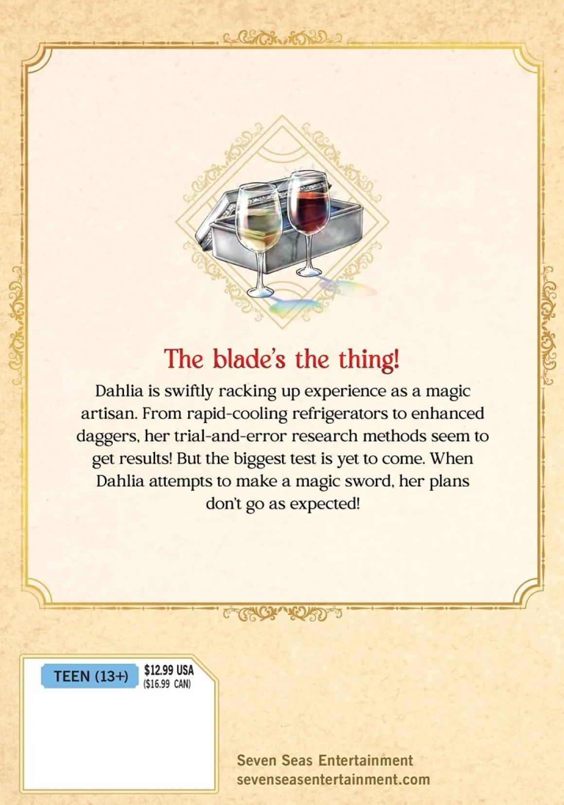 Dahlia is swiftly racking up experience as a magic artisan. From rapid-cooling refrigerators to enhanced daggers, her trial-and-error research methods seem to get results! But the biggest test is yet to come. When Dahlia attempts to make a magic sword, her plans don’t go as expected!