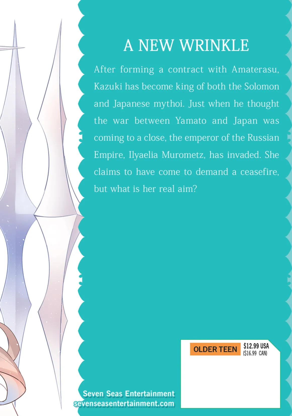 After forming a contract with Amaterasu, Kazuki has become king of both the Solomon and Japanese mythoi. Just when he thought the war between Yamato and Japan was coming to a close, the emperor of the Russian Empire, Ilyaelia Murometz, has invaded. She claims to have come to demand a ceasefire, but what is her real aim?