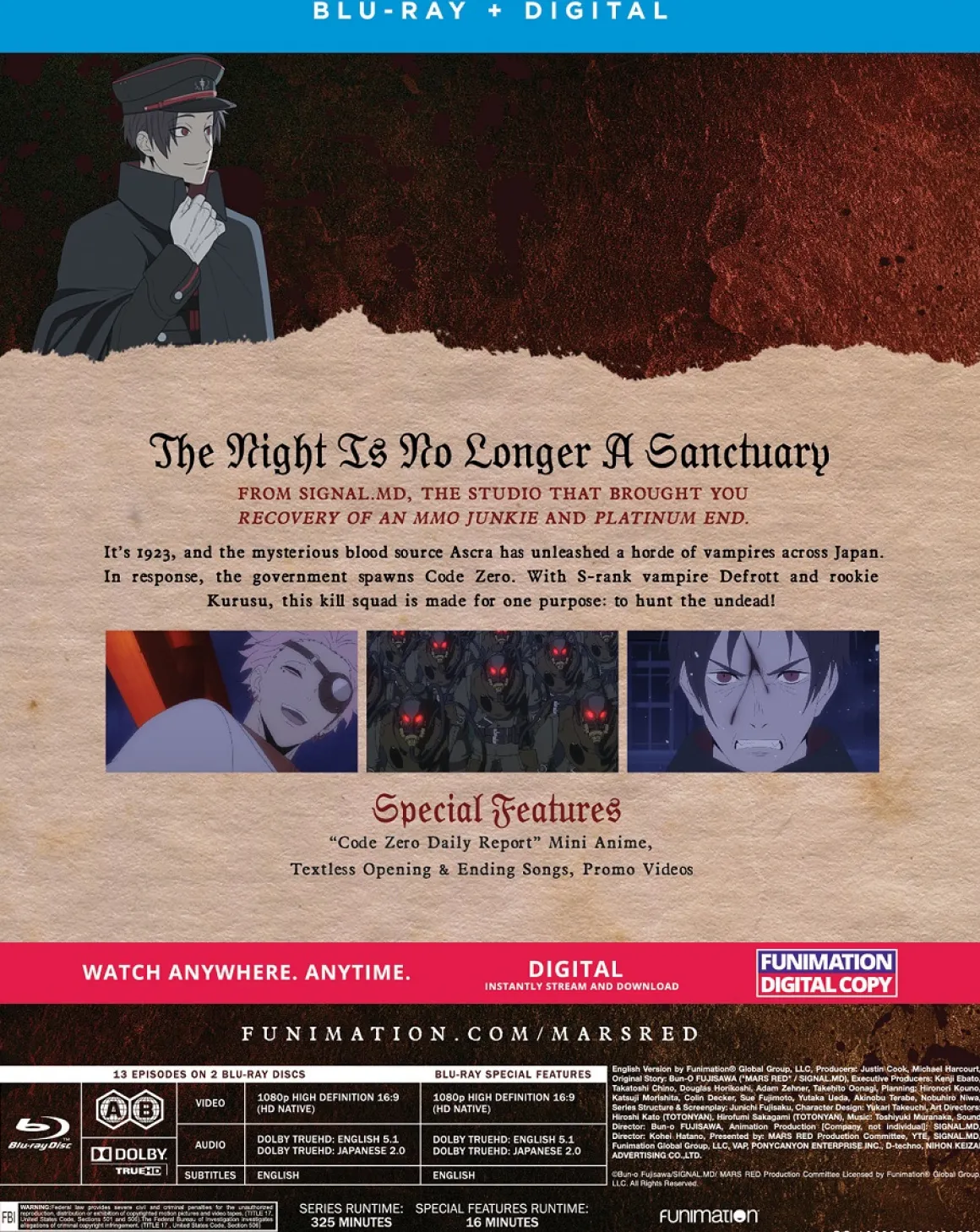It�s 1923, and the mysterious blood source Ascra has unleashed a horde of vampires across Japan. In response, the government spawns Code Zero. With S-rank vampire Defrott and rookie Kurusu, this kill squad is made for one purpose: to hunt the undead!