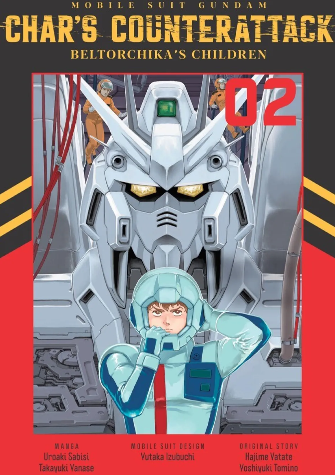 Mobile Suit Gundam: Char’s Counterattack Manga Volume 2 features story by Takayuki Yanase and art by Uroaki Sabishi.