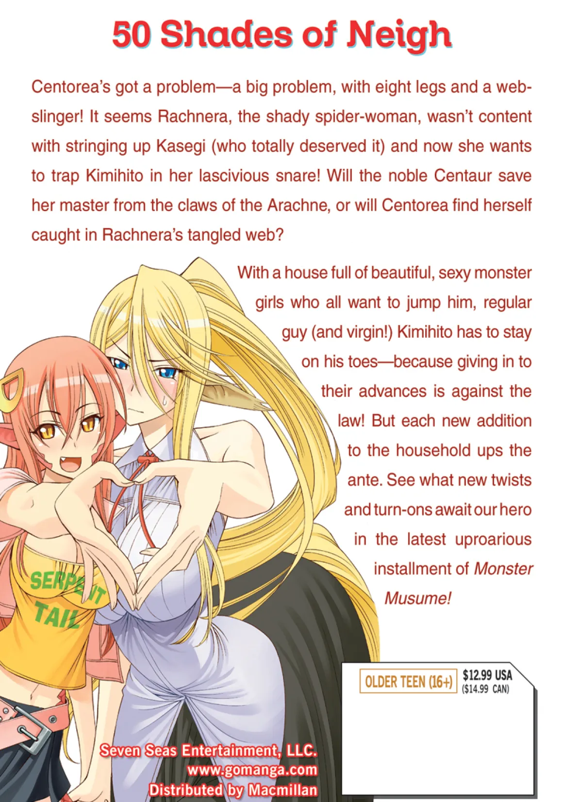 Centorea’s got a problem—a big problem, with eight legs and a web-slinger! It seems Rachnera, the shady spider-woman, wasn’t content with stringing up Kasegi (who totally deserved it) and now she wants to trap Kimihito in her lascivious snare! Will the noble centaur save her master from the claws of the Arachne, or will Centorea find herself caught in Rachnera’s tangled web?