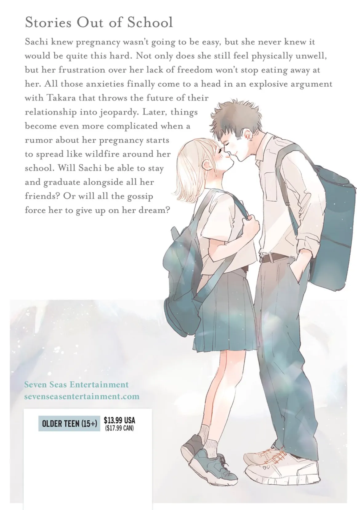 Sachi knew pregnancy wasn’t going to be easy, but she never knew it would be quite this hard. Not only does she still feel physically unwell, but her frustration over her lack of freedom won’t stop eating away at her. All those anxieties finally come to a head in an explosive argument with Takara that throws the future of their relationship into jeopardy. Later, things become even more complicated when a rumor about her pregnancy starts to spread like wildfire around her school. Will Sachi be able to stay and graduate alongside all her friends? Or will all the gossip force her to give up on her dream?
