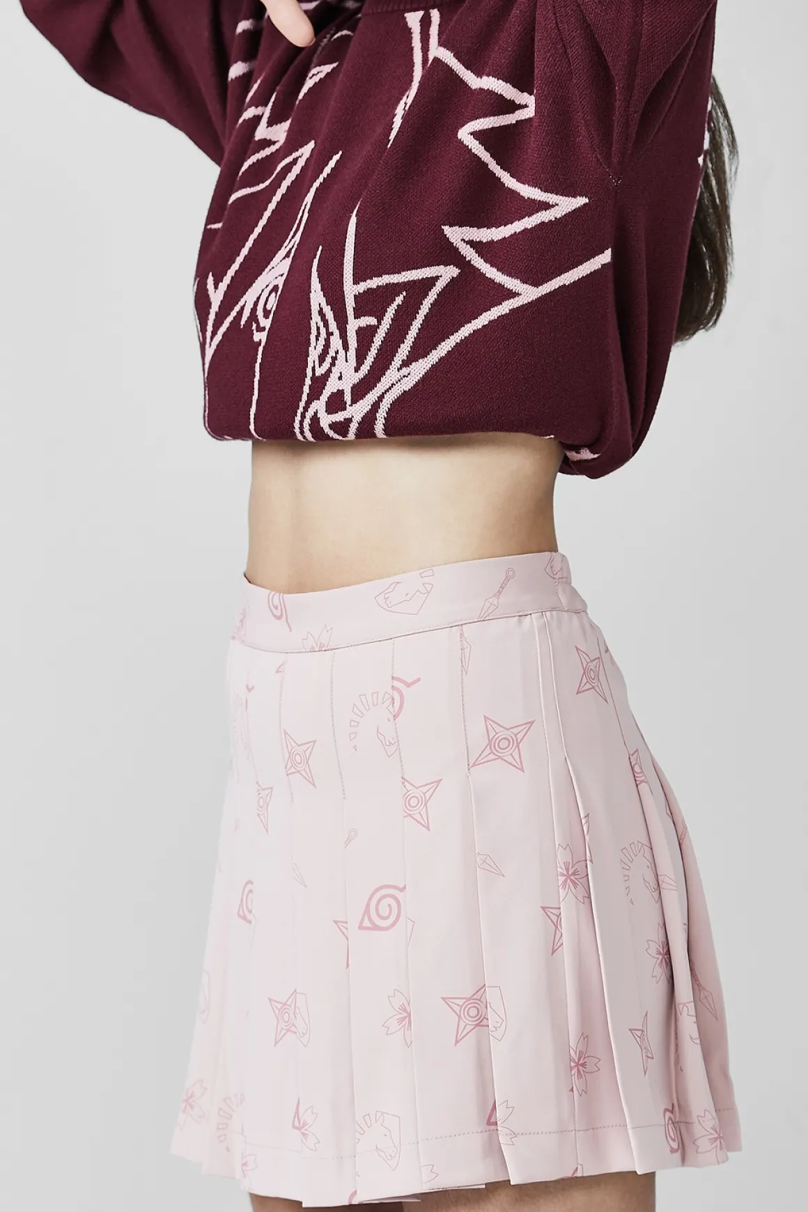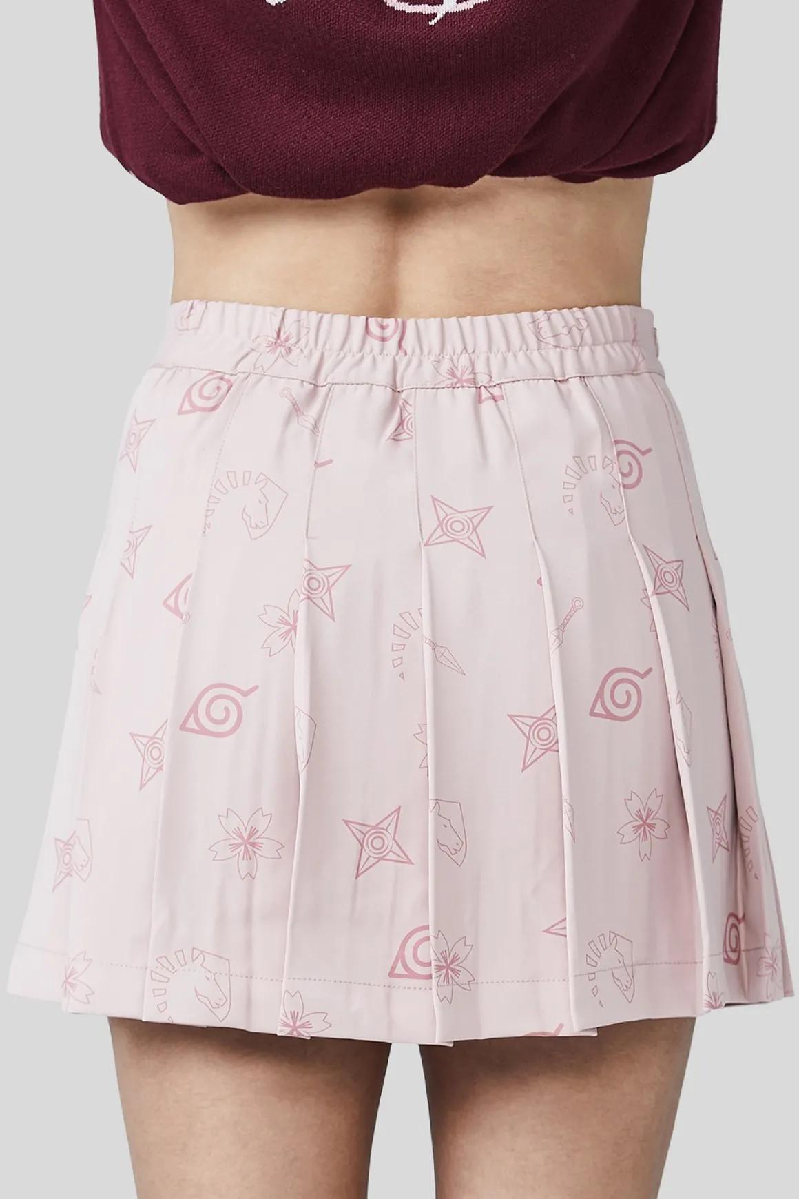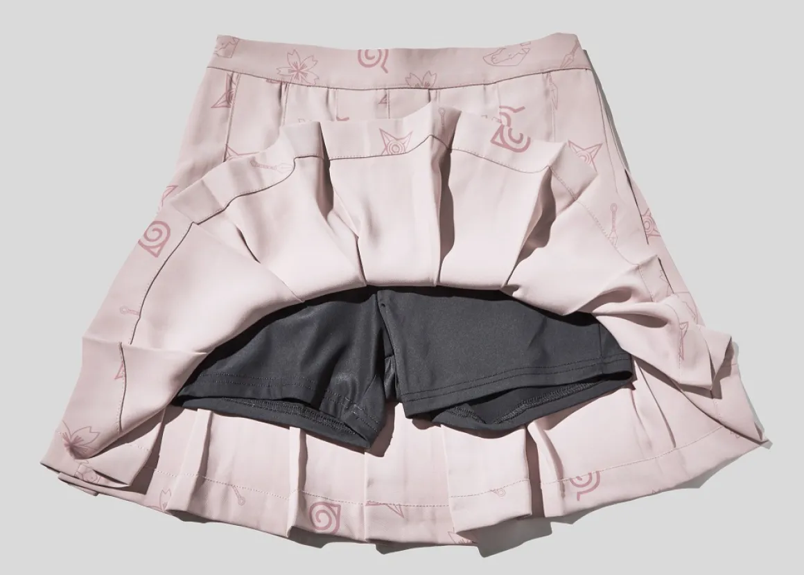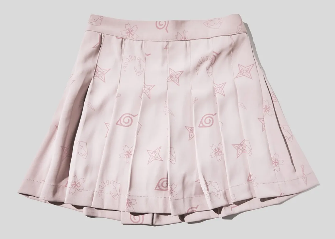 This cherry blossom pink, pleated Sakura Skirt is the perfect femme touch to any wardrobe. Fun, comfy, quality, and subtly touched up with shurikens and symbols of allegiance.
