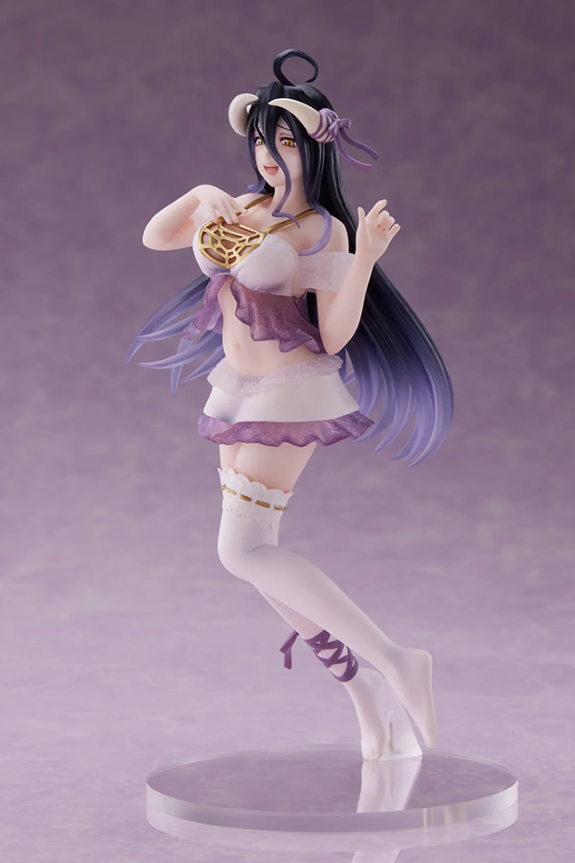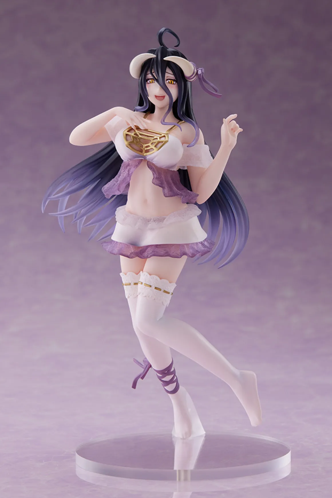 Albedo is ready for bed in her light and frilly nightwear. Albedo is sure to be a perfect addition to any Overlord fan�s collection!