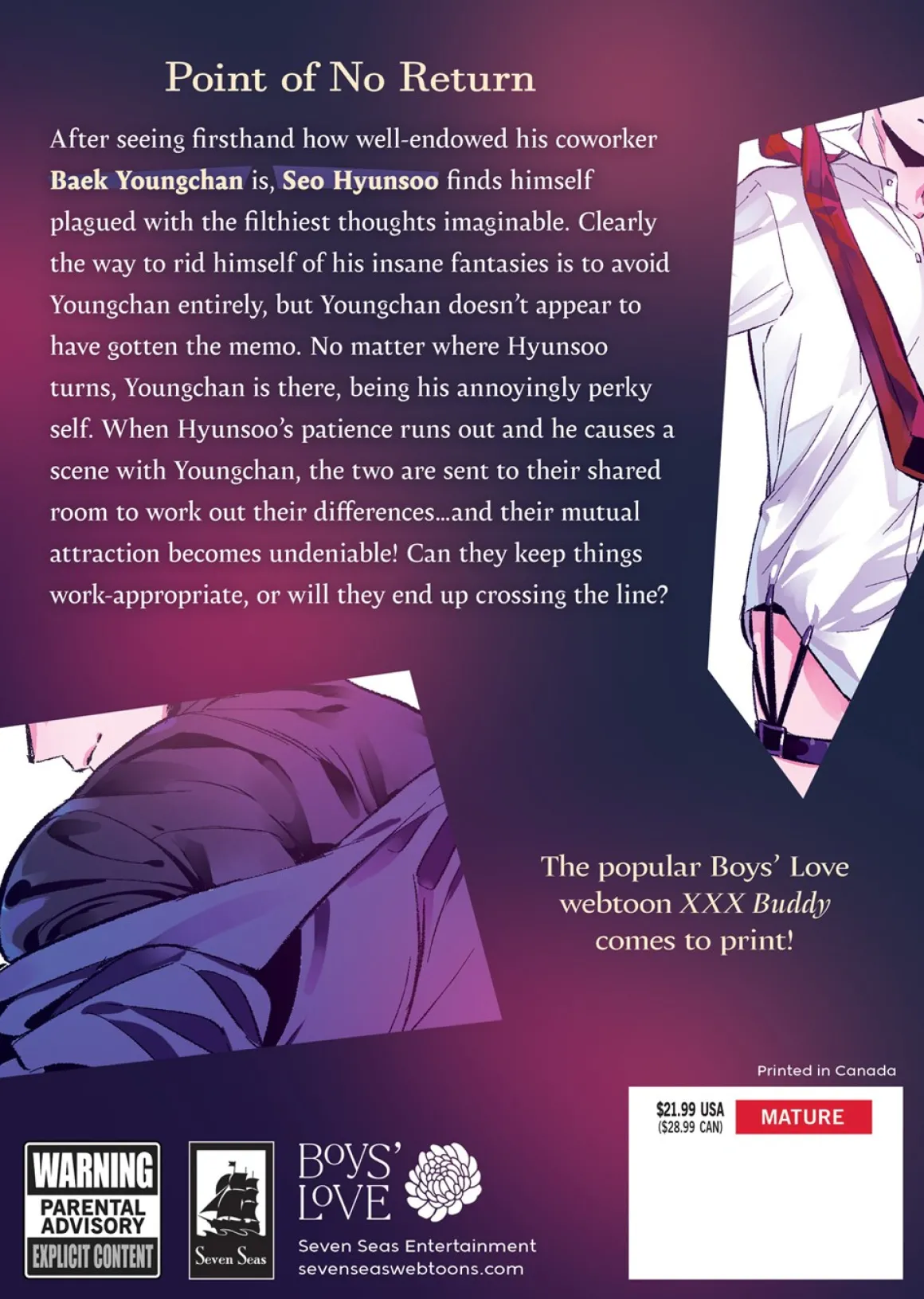 After seeing firsthand how well-endowed his coworker Baek Youngchan is, Seo Hyunsoo finds himself plagued with the filthiest thoughts imaginable. Clearly the way to rid himself of his insane fantasies is to avoid Youngchan entirely, but Youngchan doesn’t appear to have gotten the memo. No matter where Hyunsoo turns, Youngchan is there, being his annoyingly perky self. When Hyunsoo’s patience runs out and he causes a scene with Youngchan, the two are sent to their shared room to work out their differences…and their mutual attraction becomes undeniable! Can they keep things work-appropriate, or will they end up crossing the line?