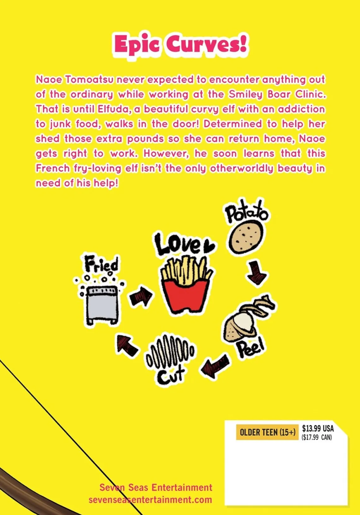 Naoe Tomoatsu never expected to encounter anything out of the ordinary while working at the Smiley Boar Clinic. That is until Elfuda, a beautiful curvy elf with an addiction to junk food, walks in the door! Determined to help her shed those extra pounds so she can return home, Naoe gets right to work. However, he soon learns that this French fry-loving elf isn’t the only otherworldly beauty in need of his help!